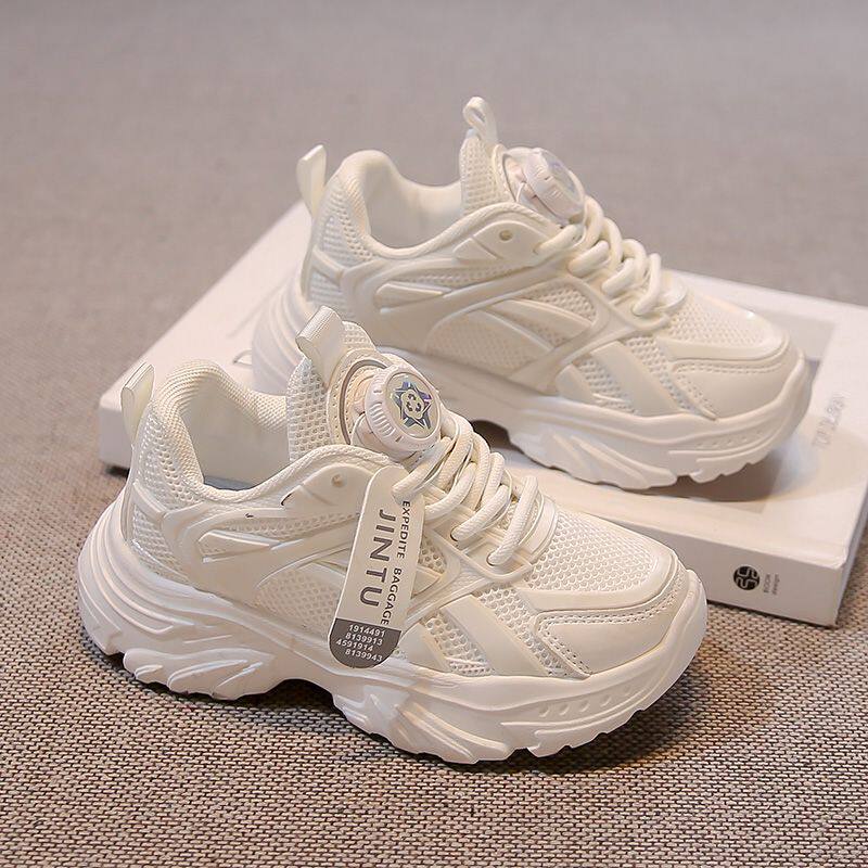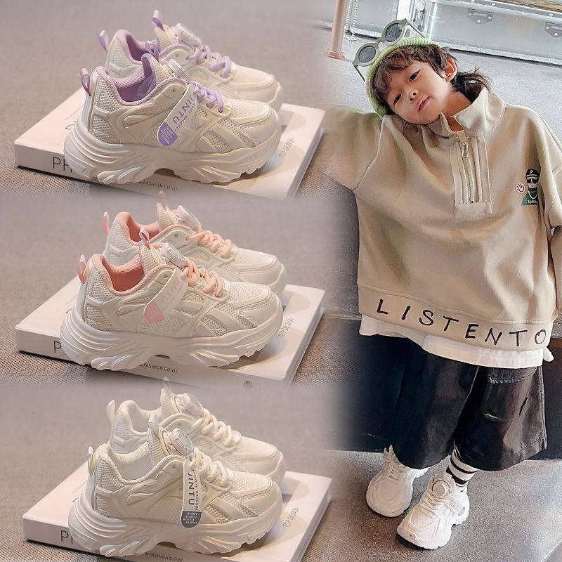 儿童白色老爹鞋2025春秋新款女童网面透气运动鞋男童学生版跑步鞋