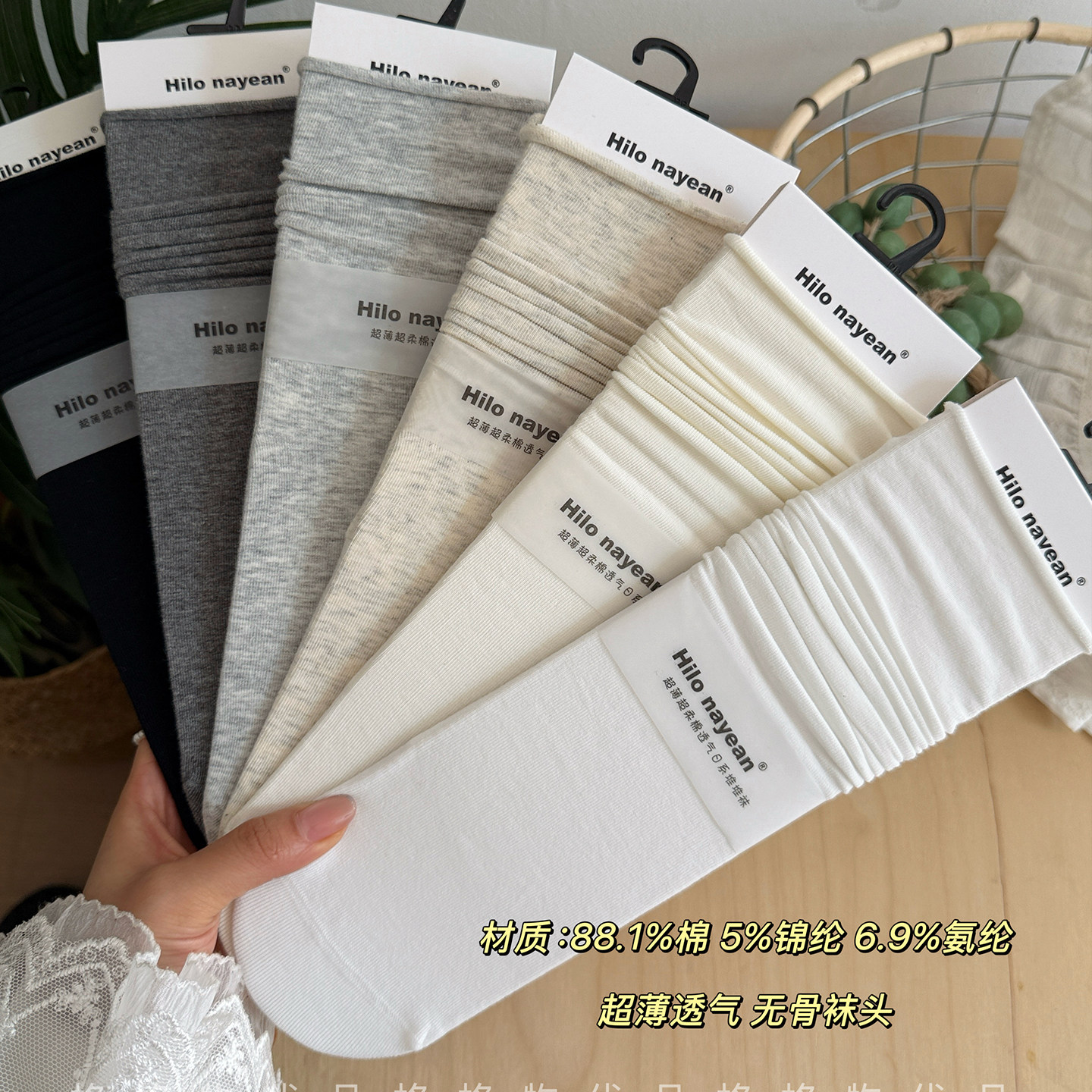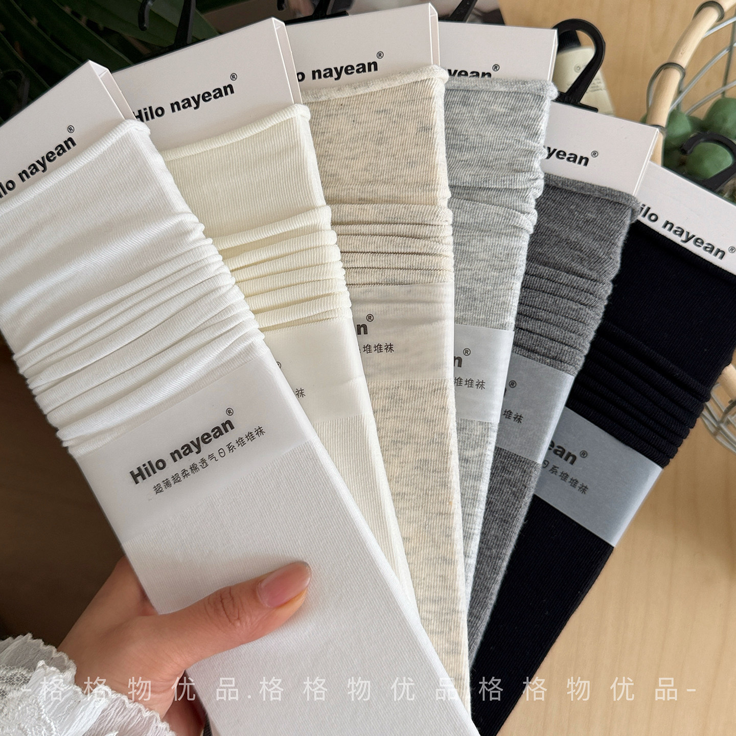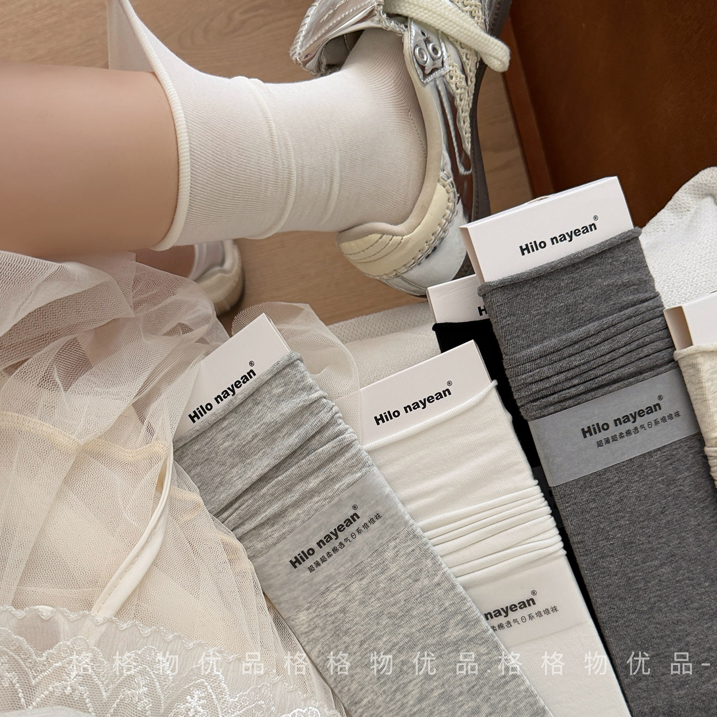 店主自留款"卷边无骨堆堆袜女春夏季薄款纯色棉袜子女中筒袜百搭