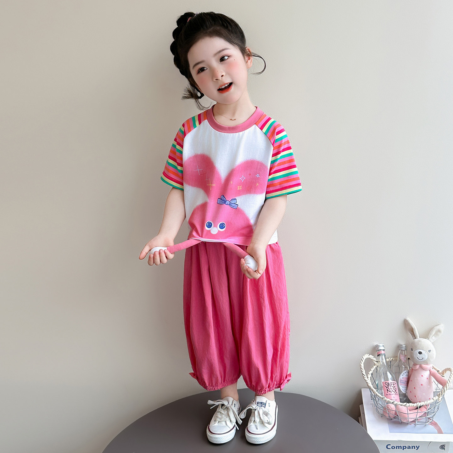 女童短袖套装夏季2026新款洋气女宝宝休闲运动装儿童夏装两件套