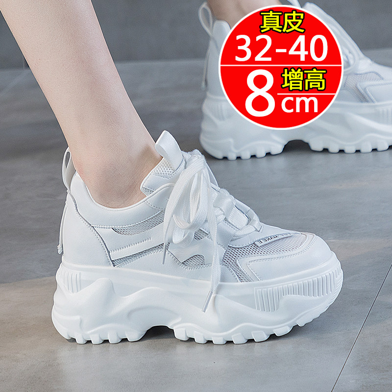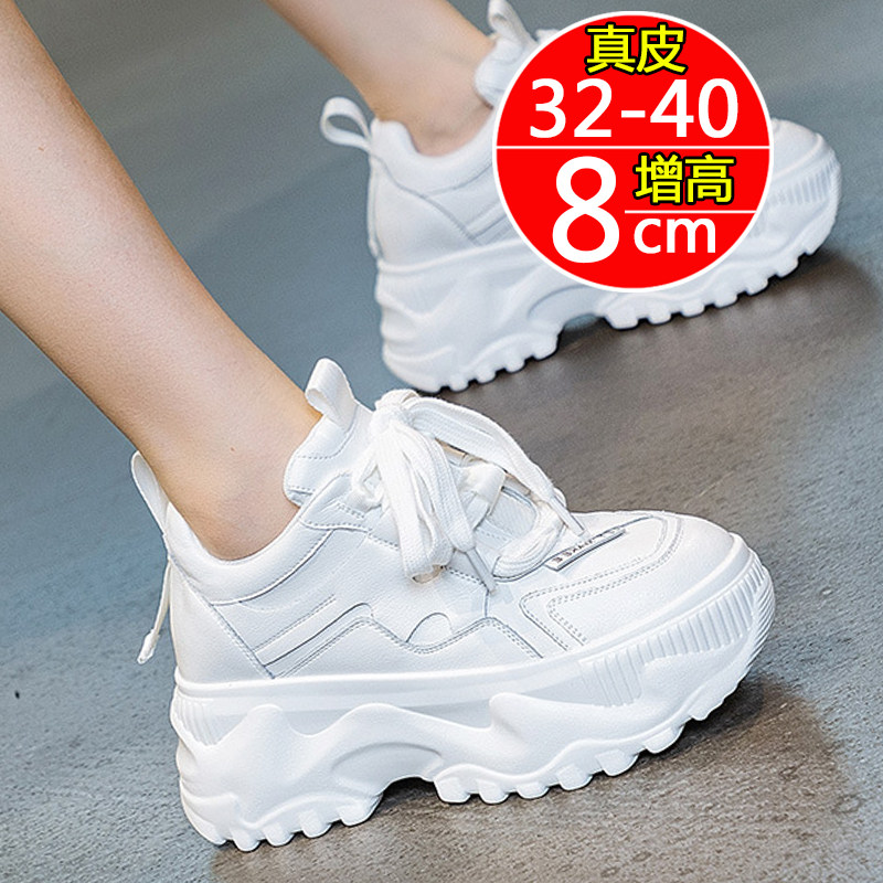 32小码33真皮老爹鞋女2025春季百搭内增高运动鞋小个子显脚小白鞋