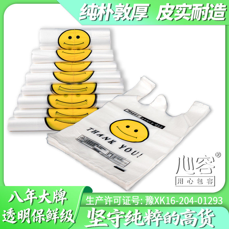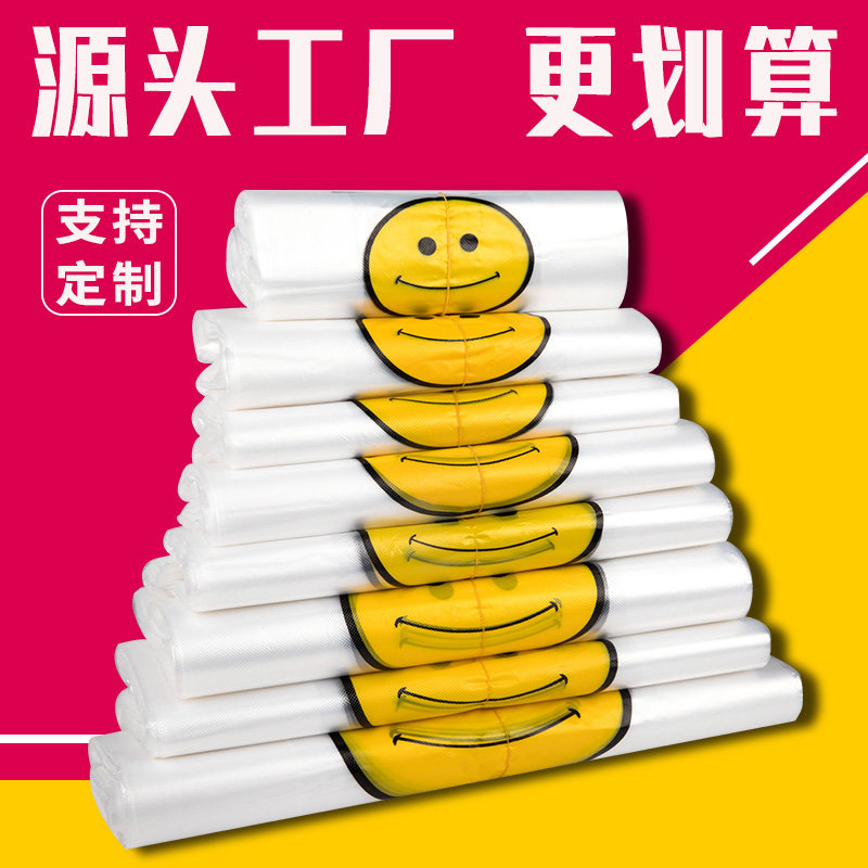 透明笑脸塑料袋厂家批发商用加厚大背心食品袋外卖打包方便小袋子