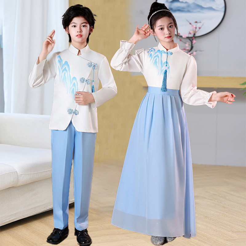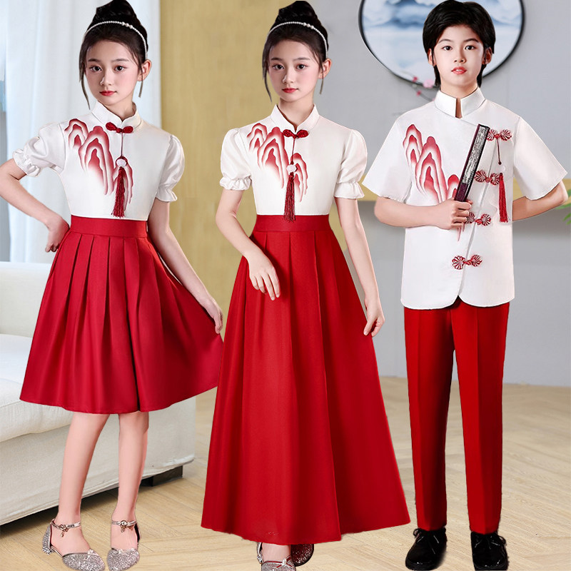 六一儿童朗诵合唱演出服小学生演讲比赛女童中国风爱国诗歌主题礼