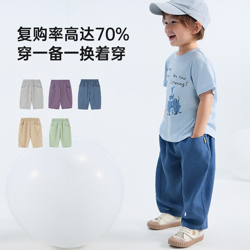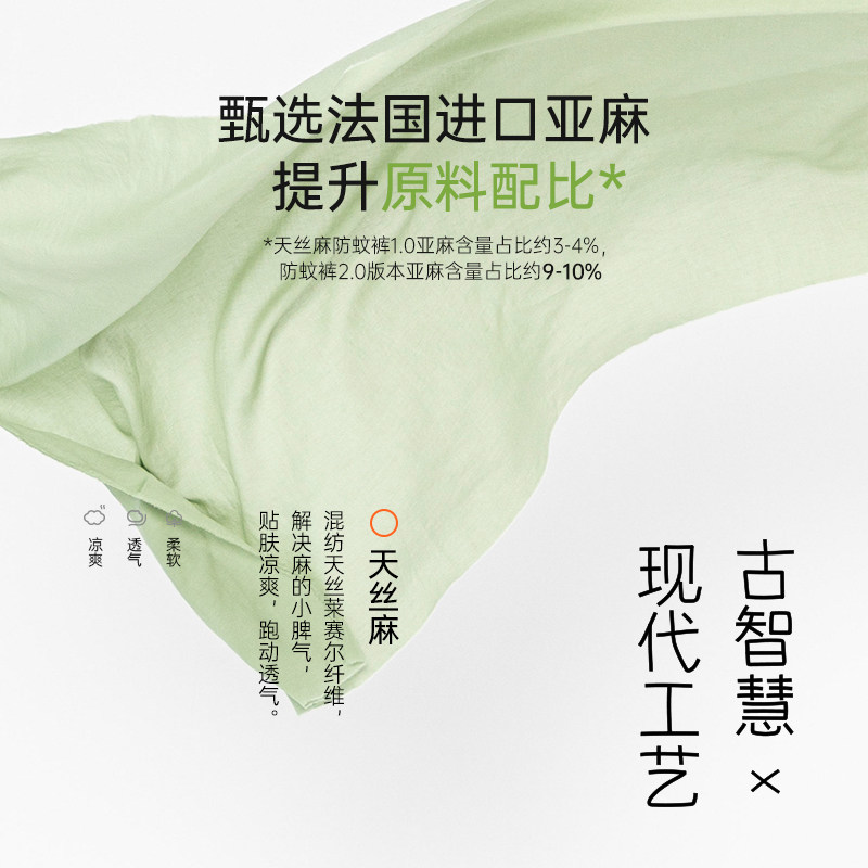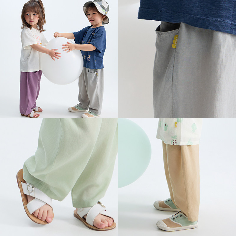 【天丝麻2.0】papa爬爬夏季儿童防蚊裤男女童裤子轻薄凉感九分裤