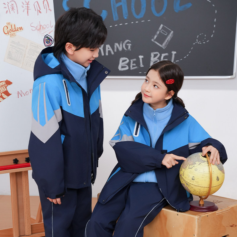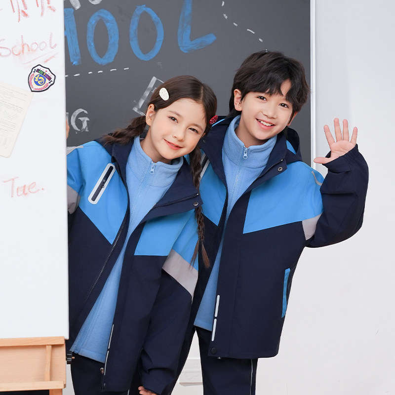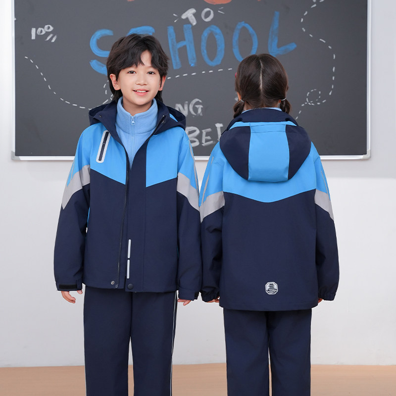 江西南昌市2025新款统一小学生春夏冬装校服初中高中冲锋衣三件套