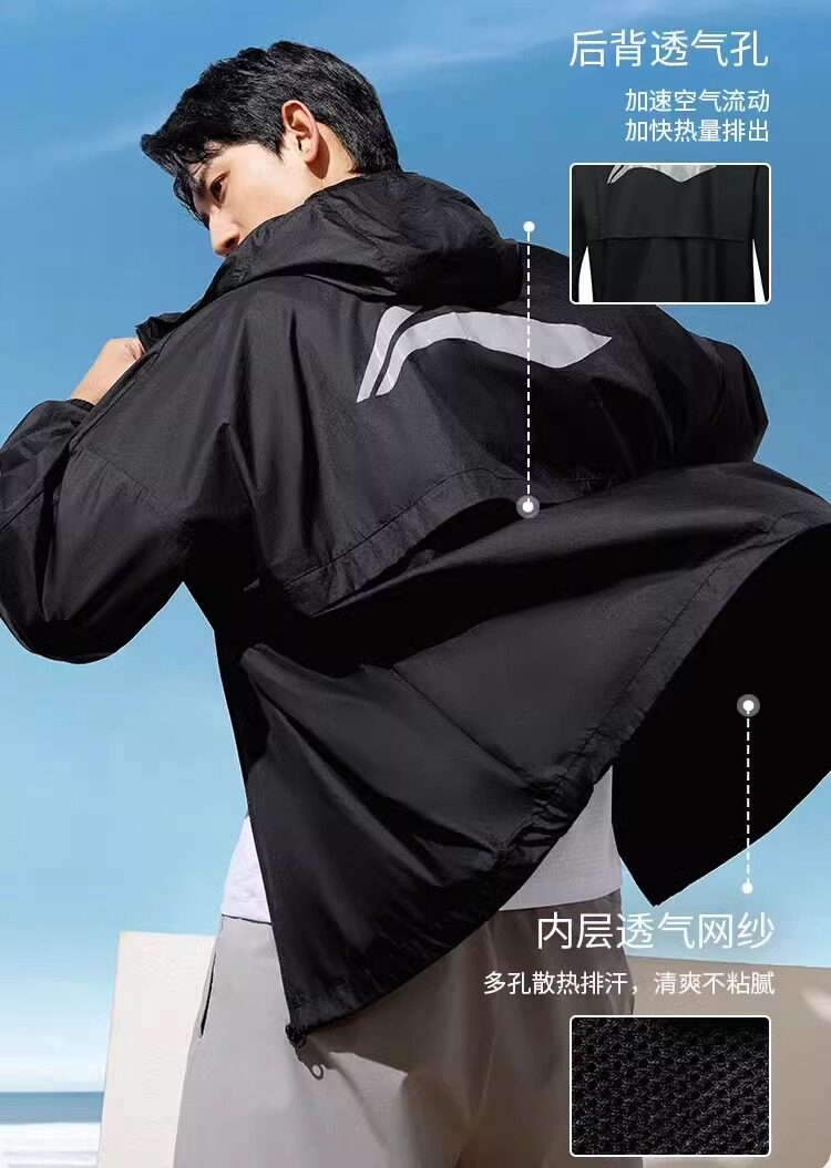 李宁外套男款2024春季新款男子防晒薄款宽松运动风衣开衫AFDU831