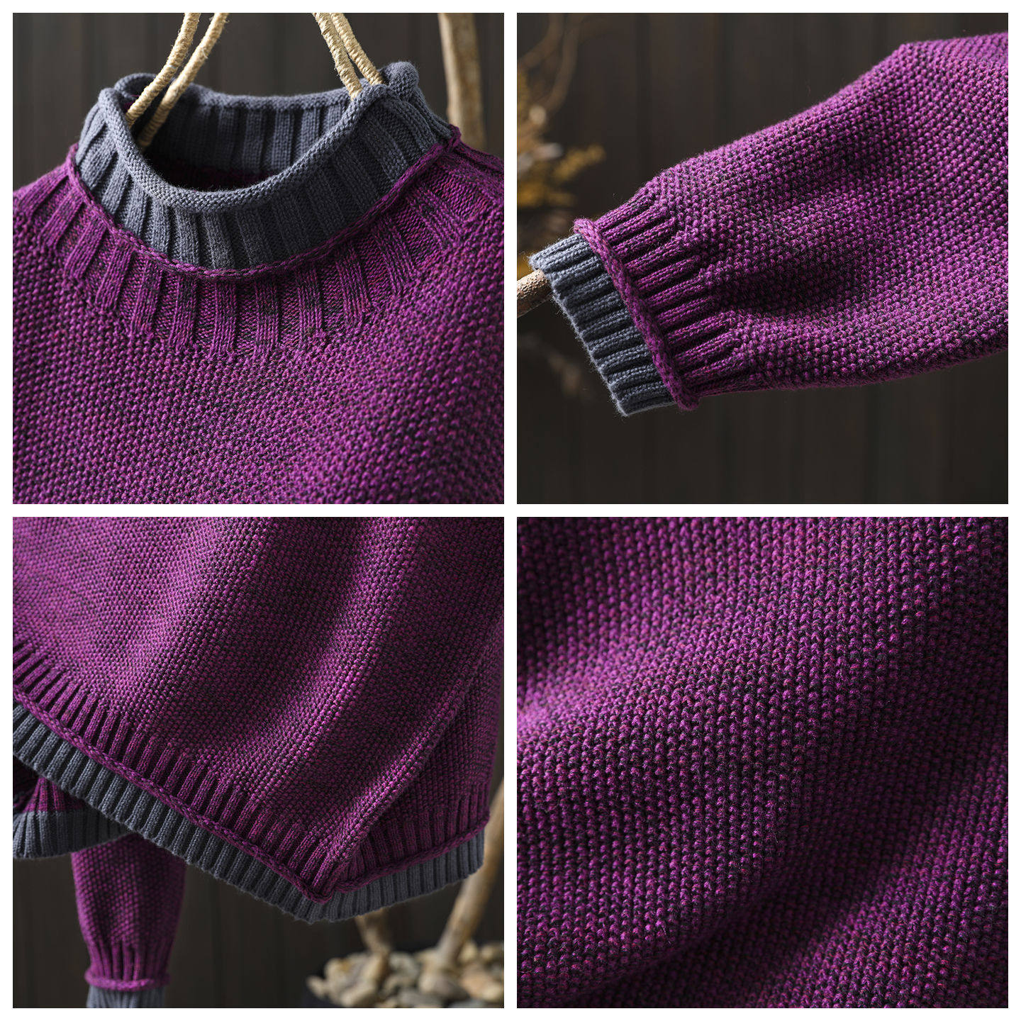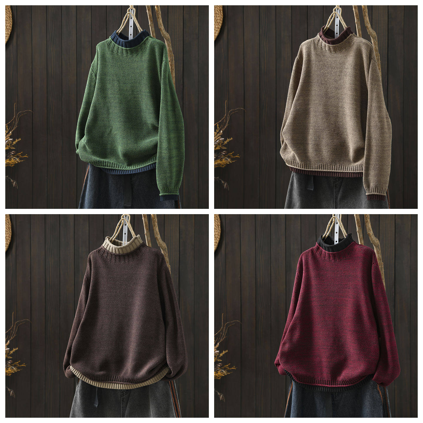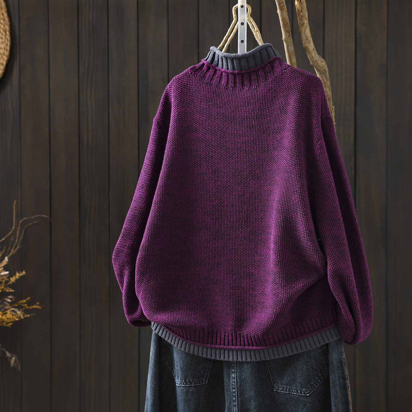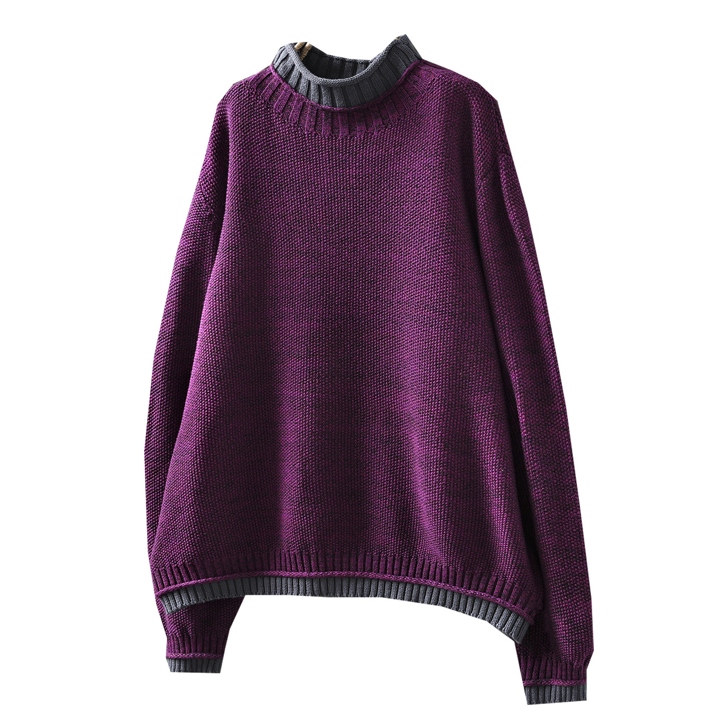毛衣女款2026新款冬季半高领撞色拼接感棉线针织宽松慵懒风毛线衣