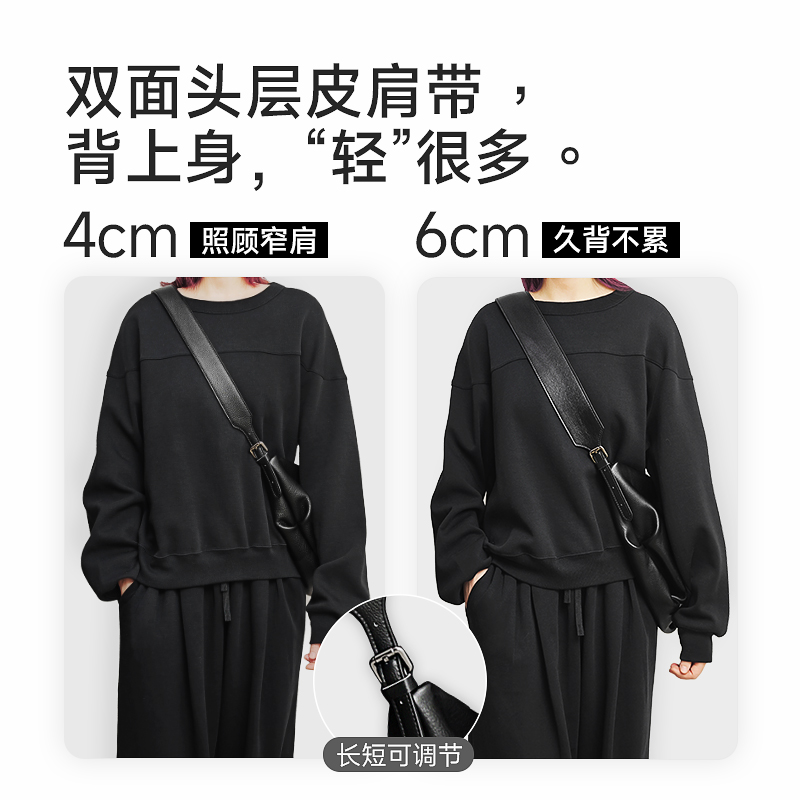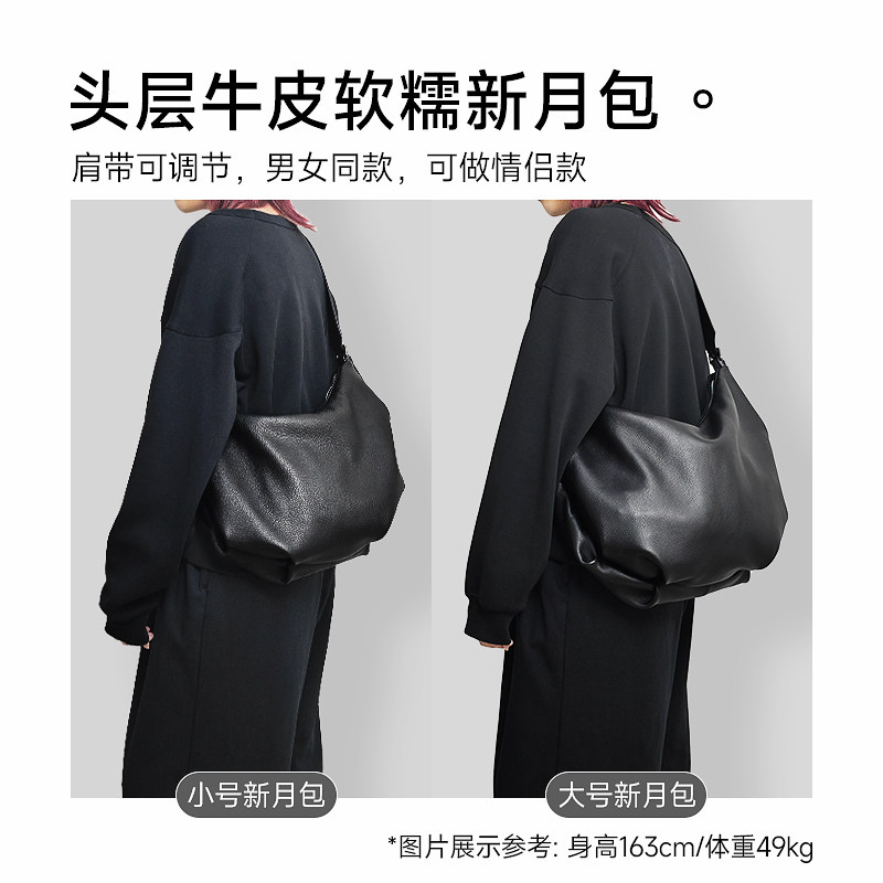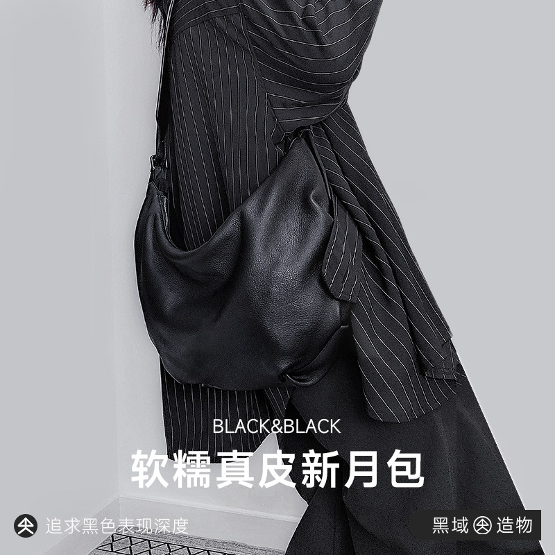黑域新款头层牛皮新月包真皮斜挎包宽肩带大容量超软饺子包托特包