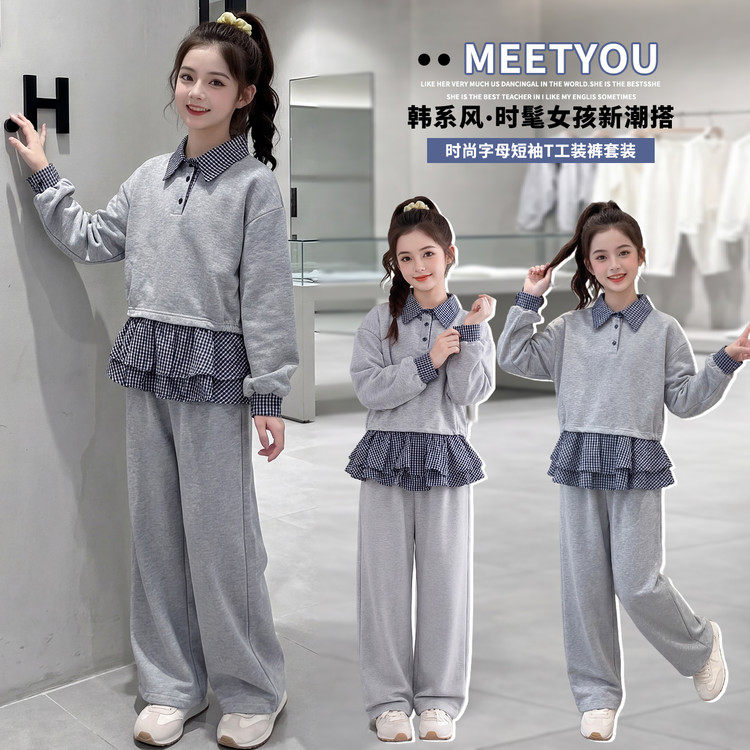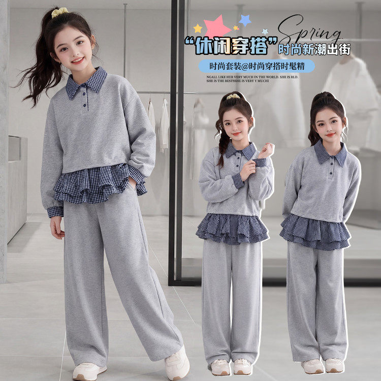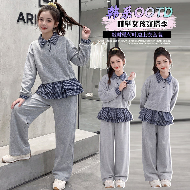 超好看女孩运动套装2026新款童装春季洋气女孩屁帘卫裤卫衣两件套