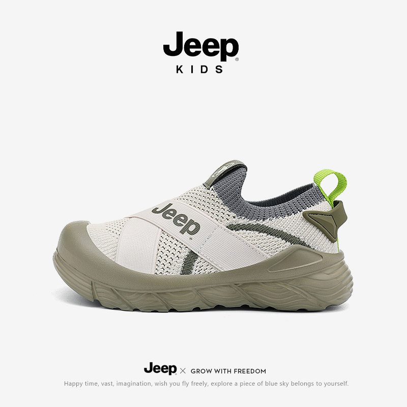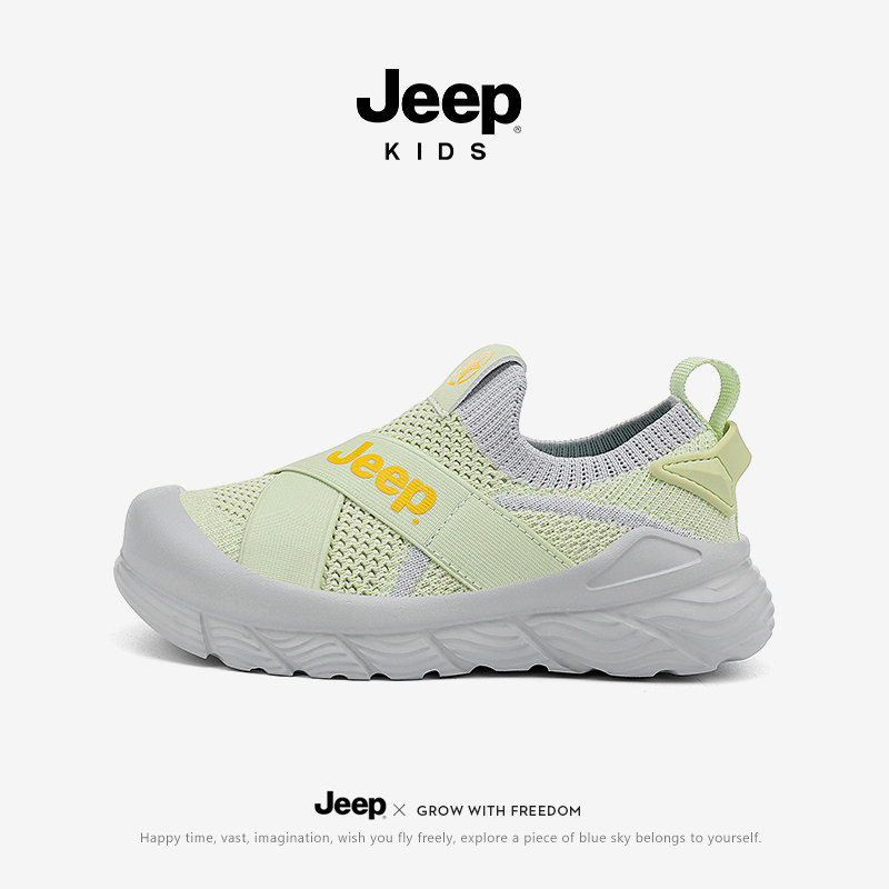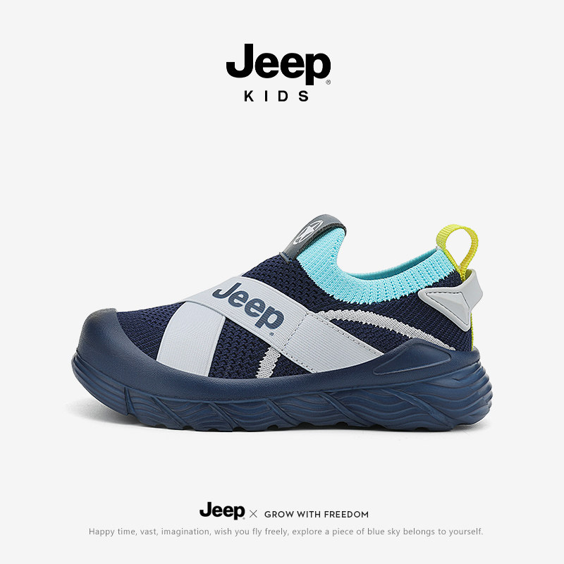 jeep儿童鞋子男童运动鞋女童春季幼儿园室内鞋网面透气一脚蹬网鞋