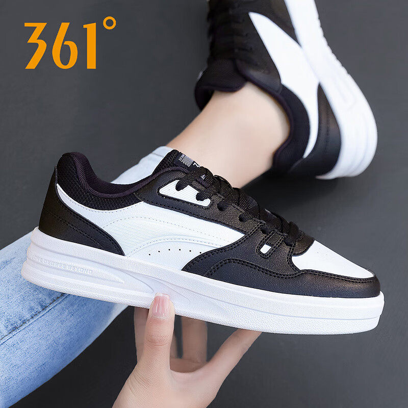 361度女鞋板鞋春秋季皮面透气女士小白鞋2026新款轻便休闲运动鞋