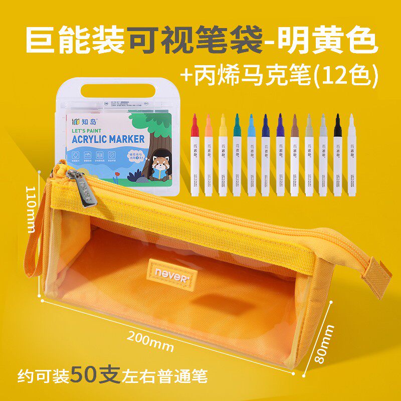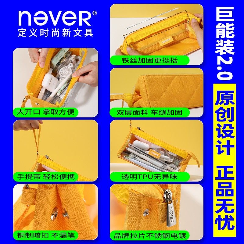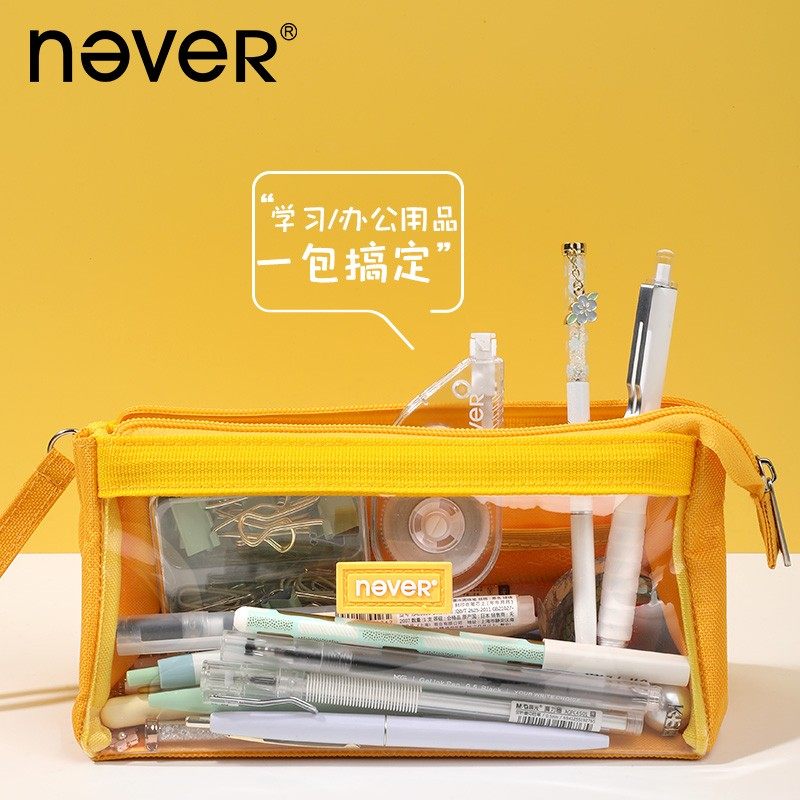 NEVER巨能装大容量笔袋半透明可视大收纳折叠简约高颜值开学文具