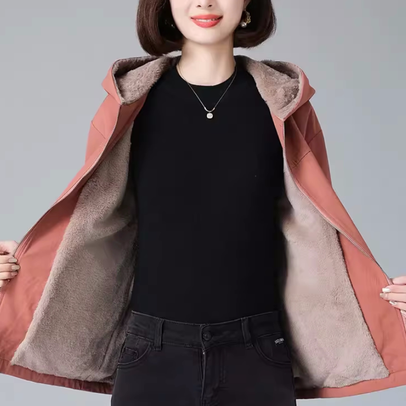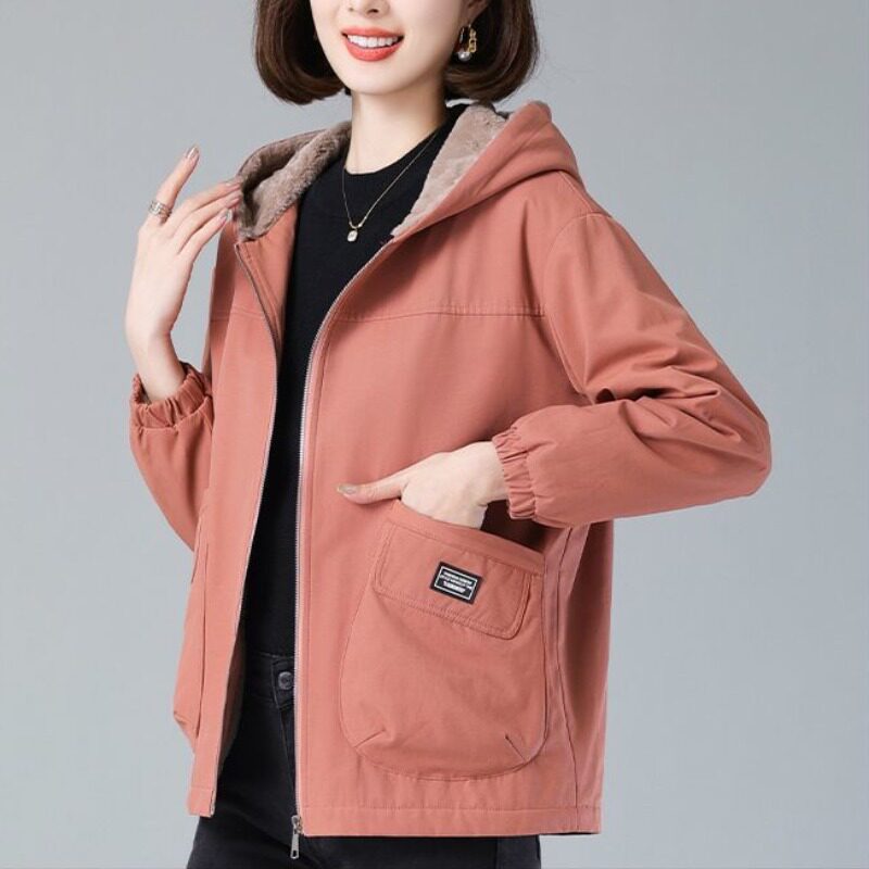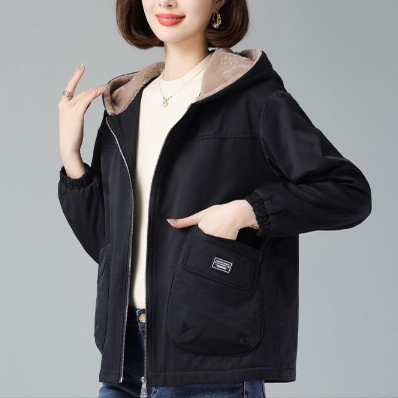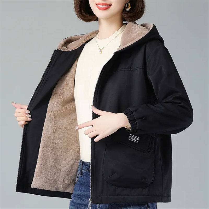 连帽派克服外套女冬季2026新款洋气保暖妈妈棉衣宽松加绒加厚棉服
