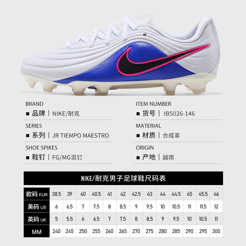 Nike耐克传奇11大师天迫系列中端FGMG短钉儿童足球鞋男女孩IB5026