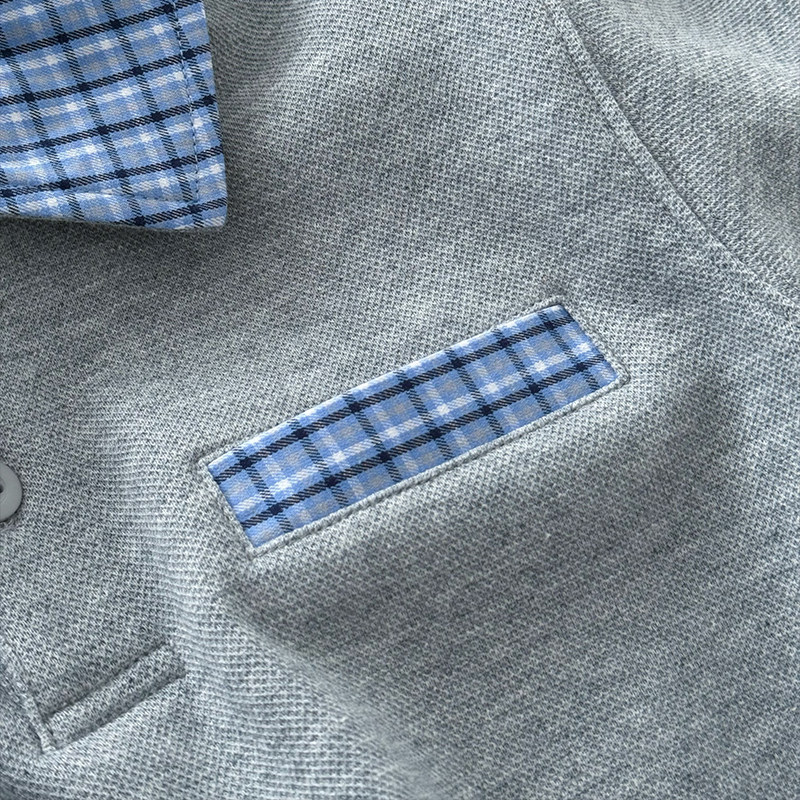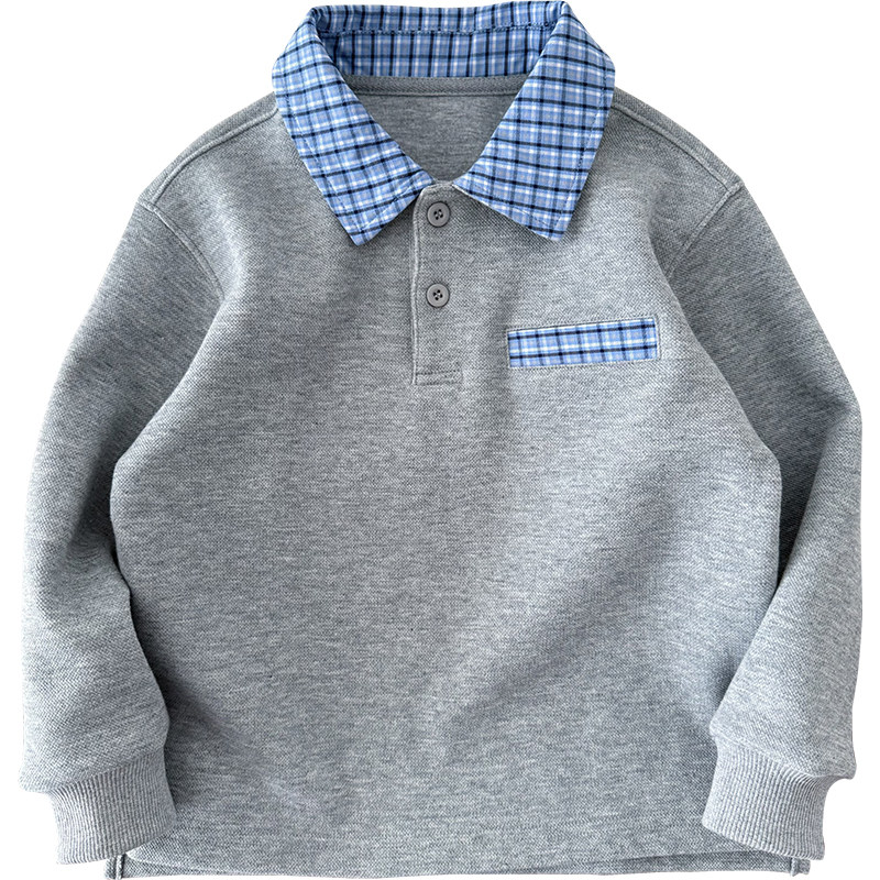 男童长袖Polo衫~中大童学院风格子翻领T恤珠地网眼棉上衣纯色打底