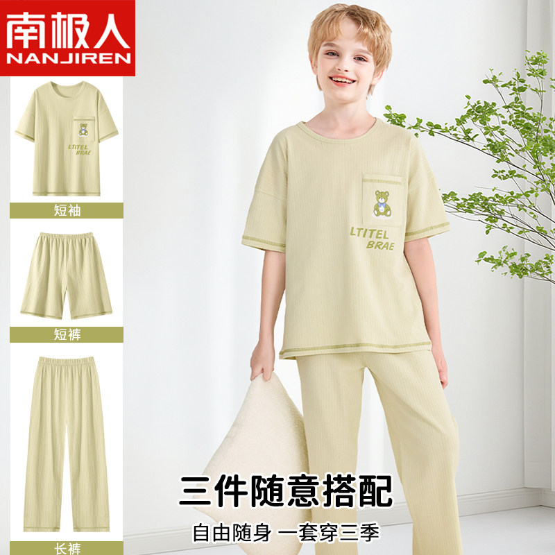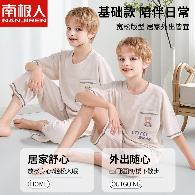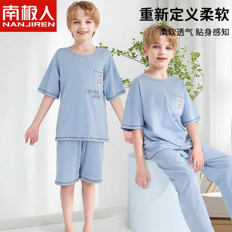 儿童睡衣男童夏季纯棉短袖家居服空调服中大童男孩青少年2026新款