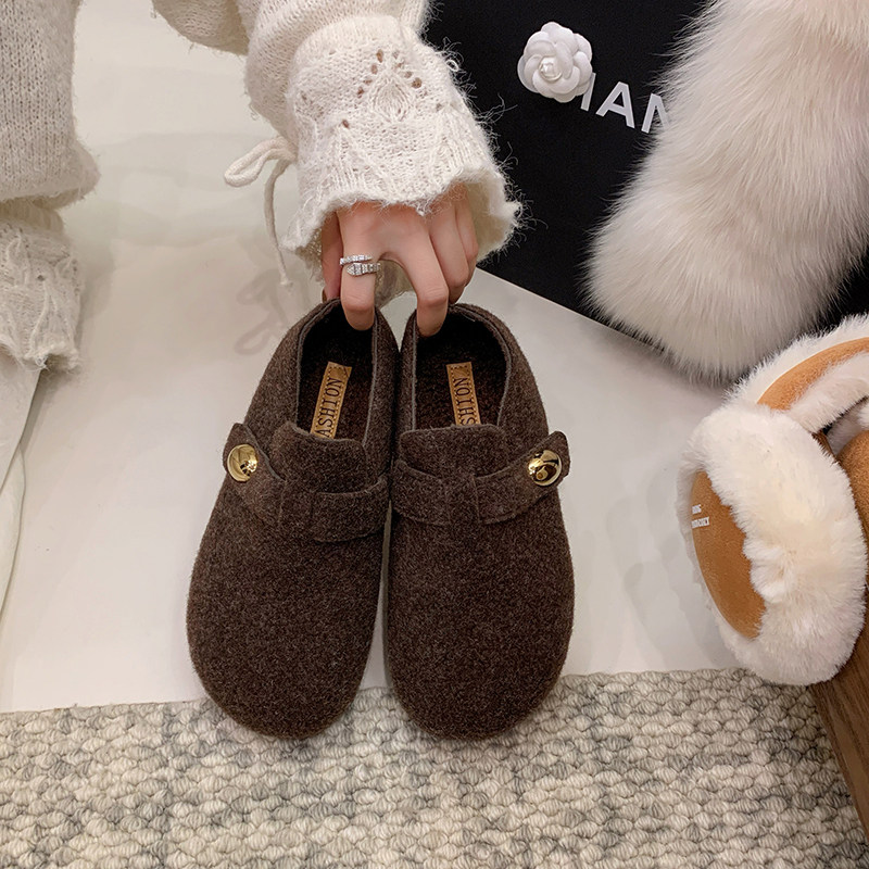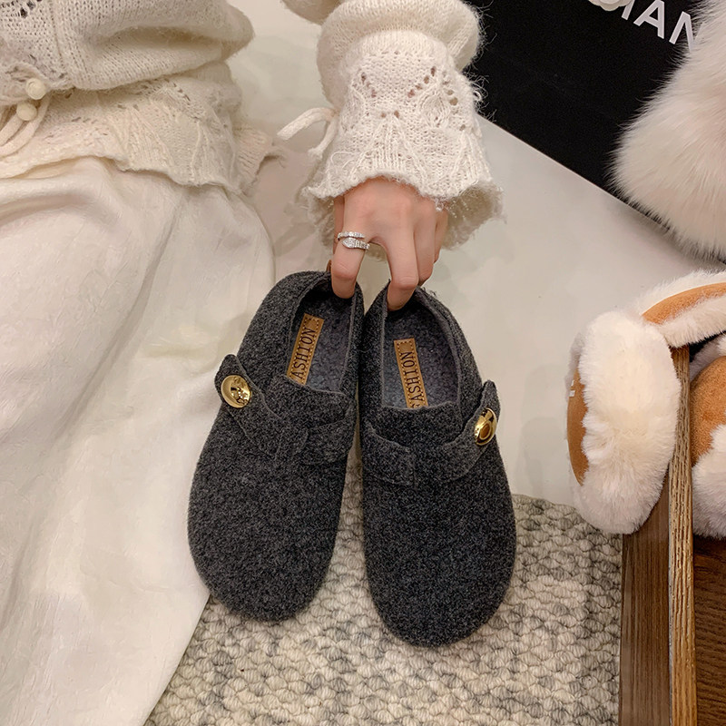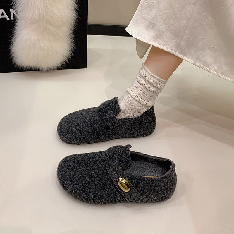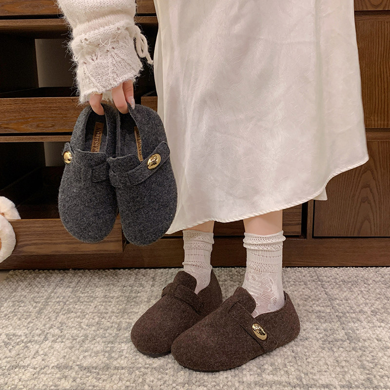 毛呢内增高加绒保暖勃肯鞋女2026秋冬新款棉鞋灰色毛毡厚底毛毛鞋