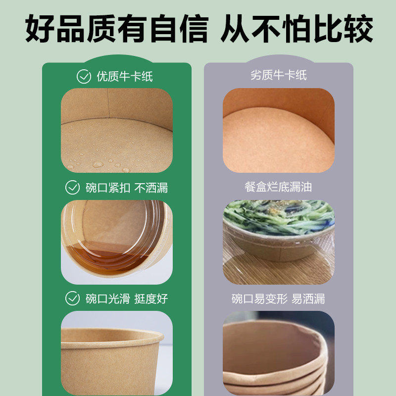 一次性牛皮纸碗餐盒圆形带盖卤肉饭外卖打包盒商用水果轻食沙拉碗