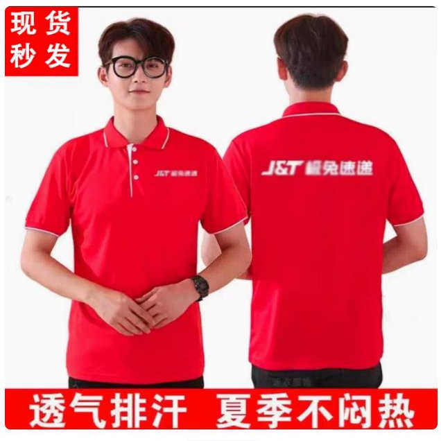 DIY极兔速递工作服短袖定制印字logo快递员工装马甲翻领t恤速干衣