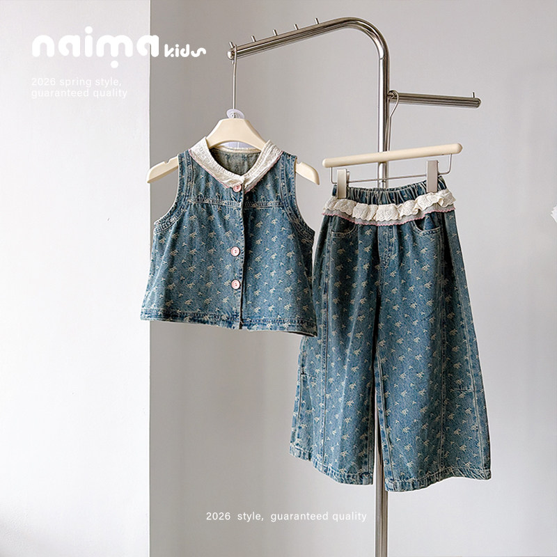 女童牛仔套装夏装2026新款韩版洋气夏季儿童装女孩时髦背心两件套