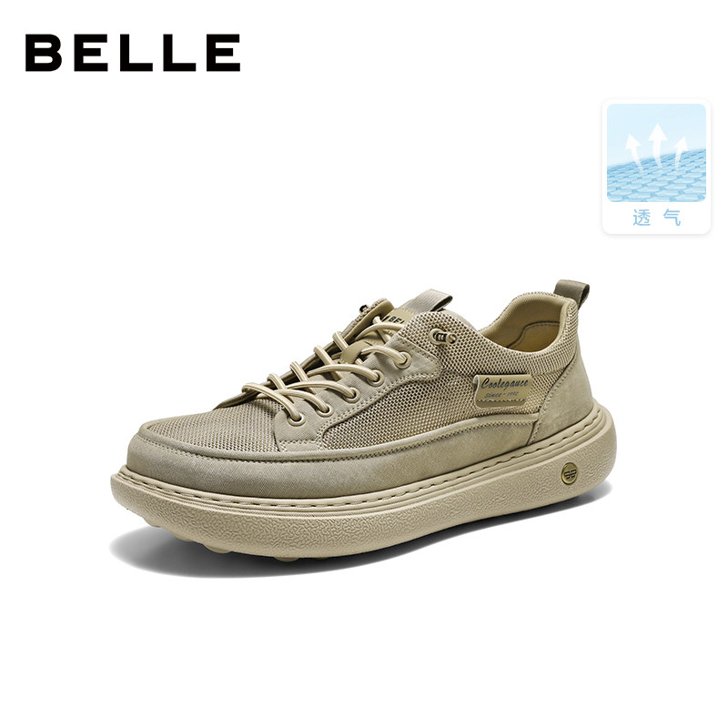 百丽男士户外休闲工装板鞋夏季新款厚底增高透气布鞋子A2137CM5