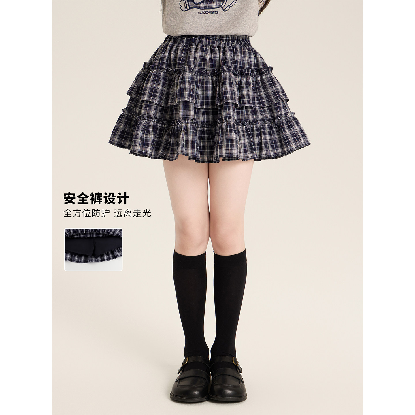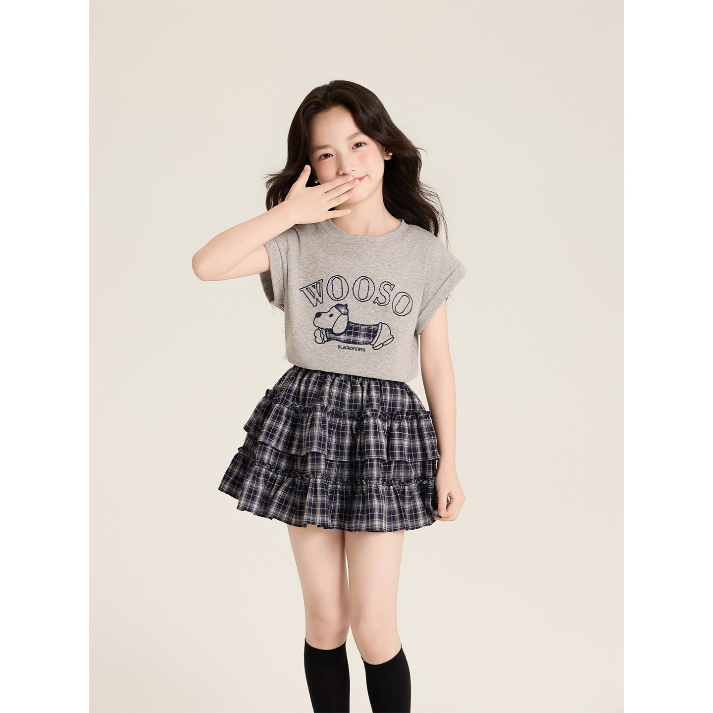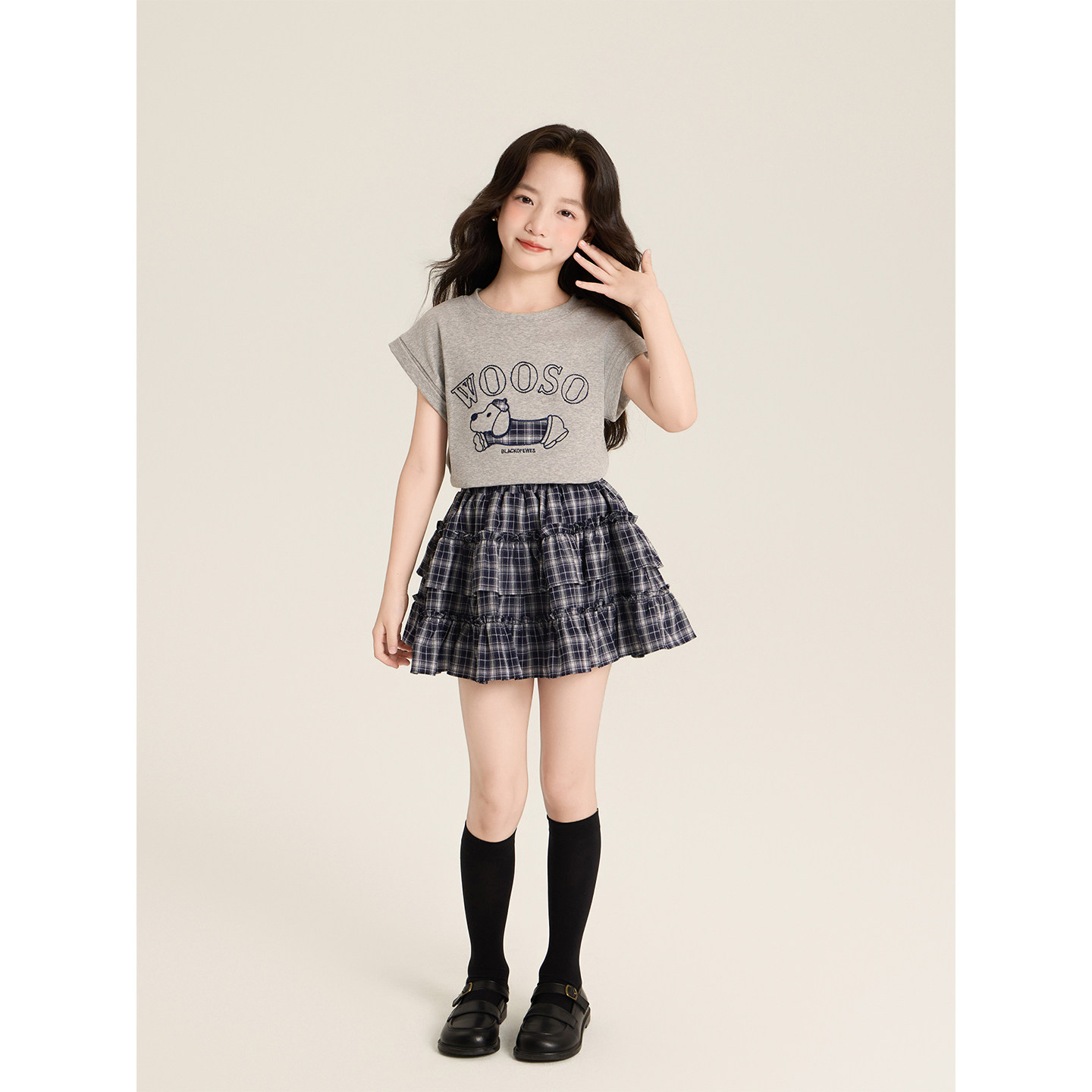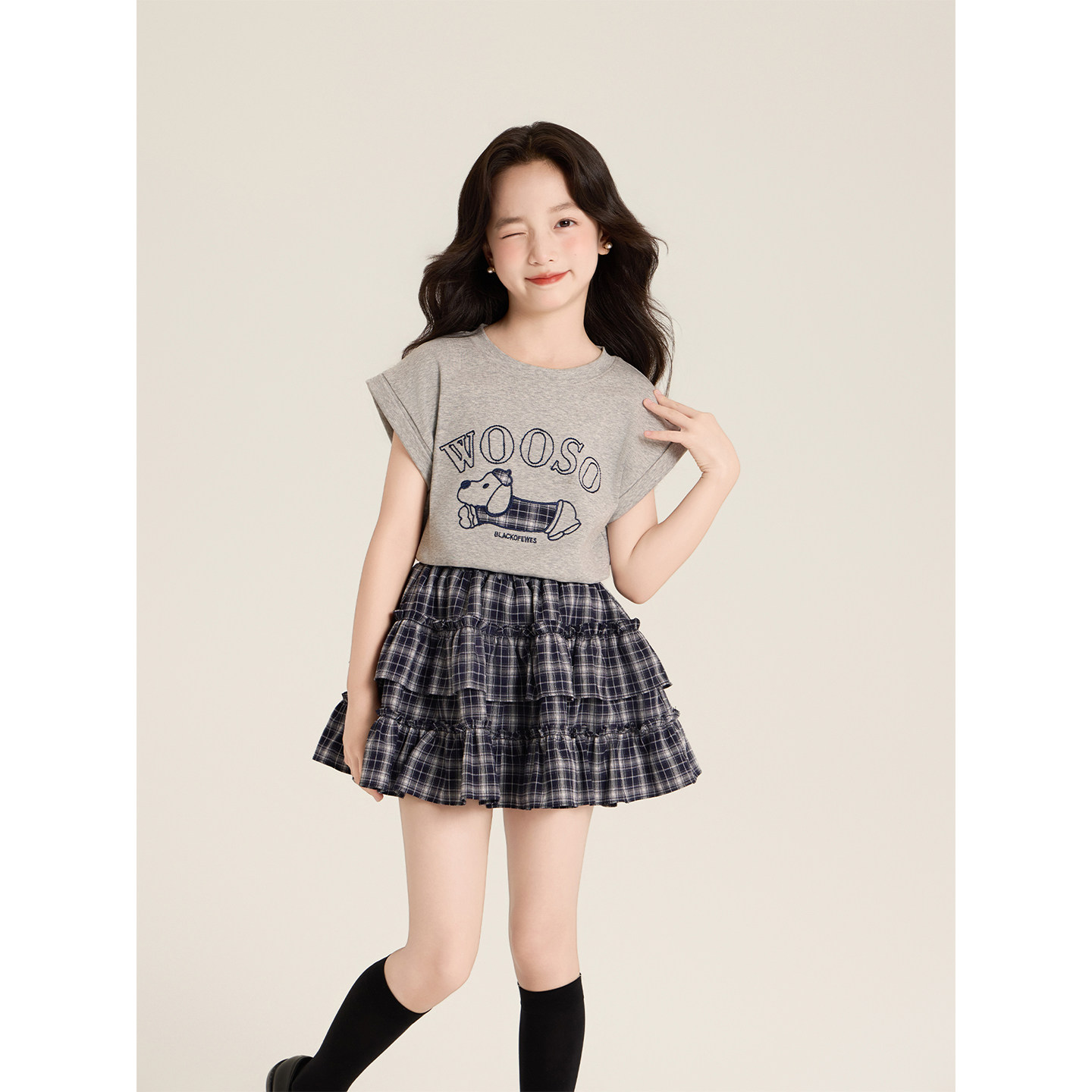 Amybaby女童套装夏季2025新款洋气休闲卡通印花T恤格子半身裙