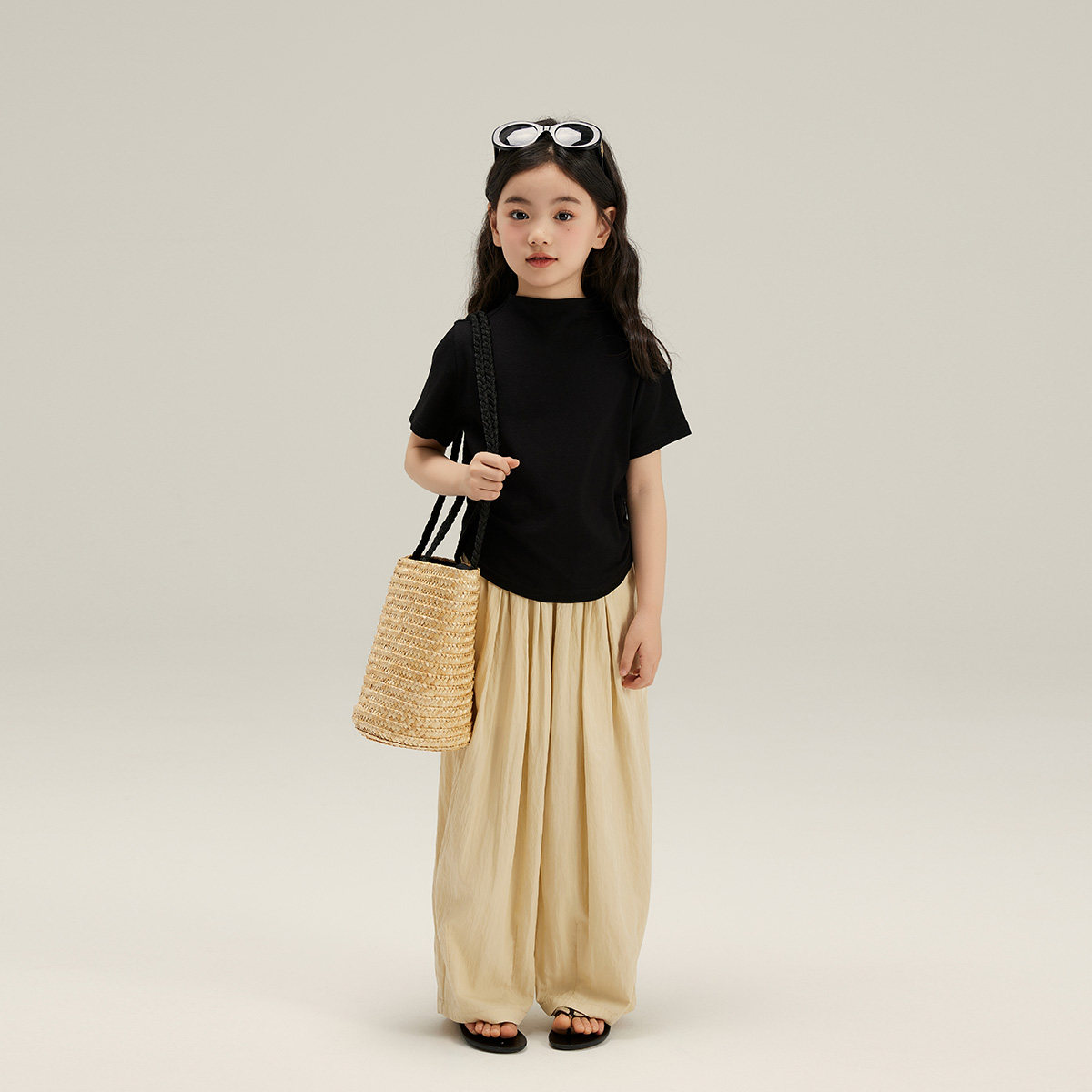 布丁哈鲁童装女童短袖t恤儿童打底衫2026夏季新款纯色修身上衣
