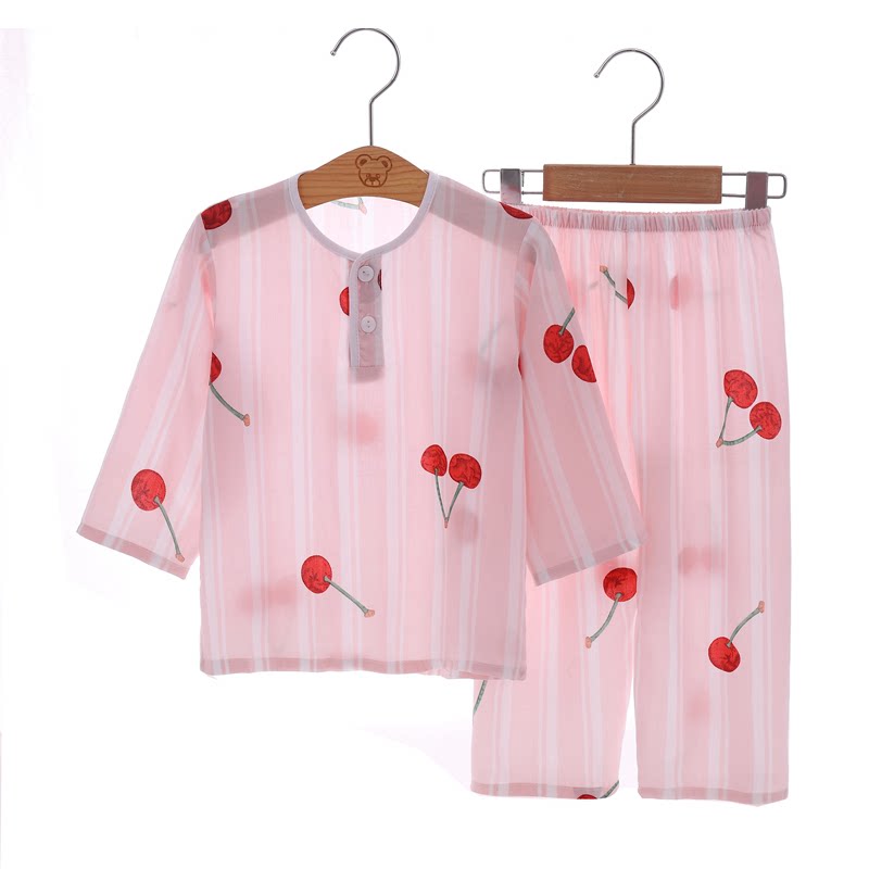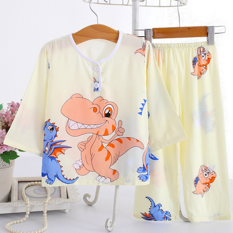 夏季儿童棉绸睡衣人造棉女童宝宝薄款女孩家居服长袖夏天绵绸套装