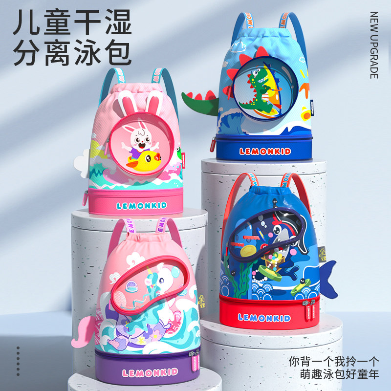 柠檬宝宝儿童游泳包干湿分离收纳袋男童女童沙滩双肩包防水带鞋仓