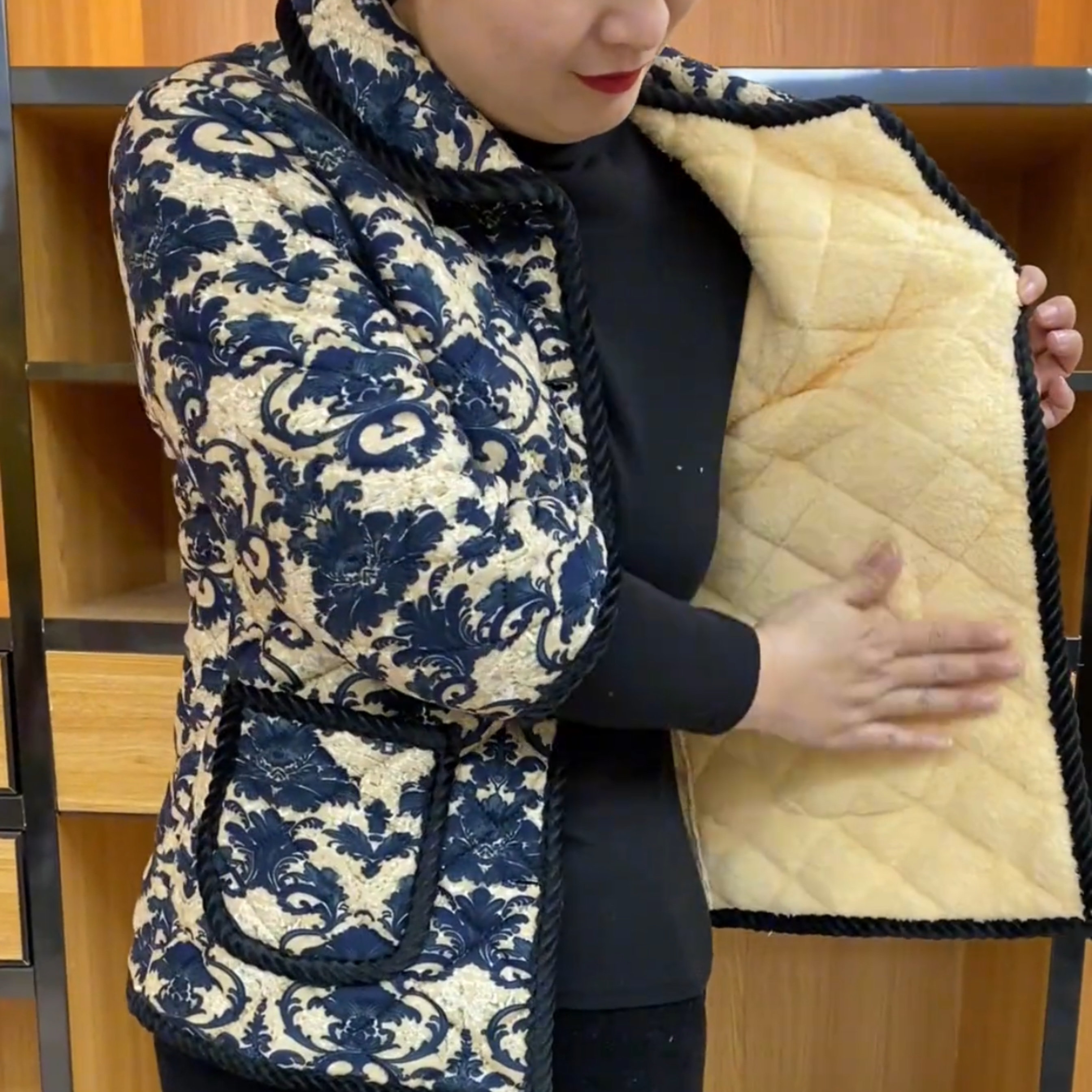 中老年女秋冬季中袖棉马甲加绒加厚七分袖棉衣妈妈棉服半截袖棉袄