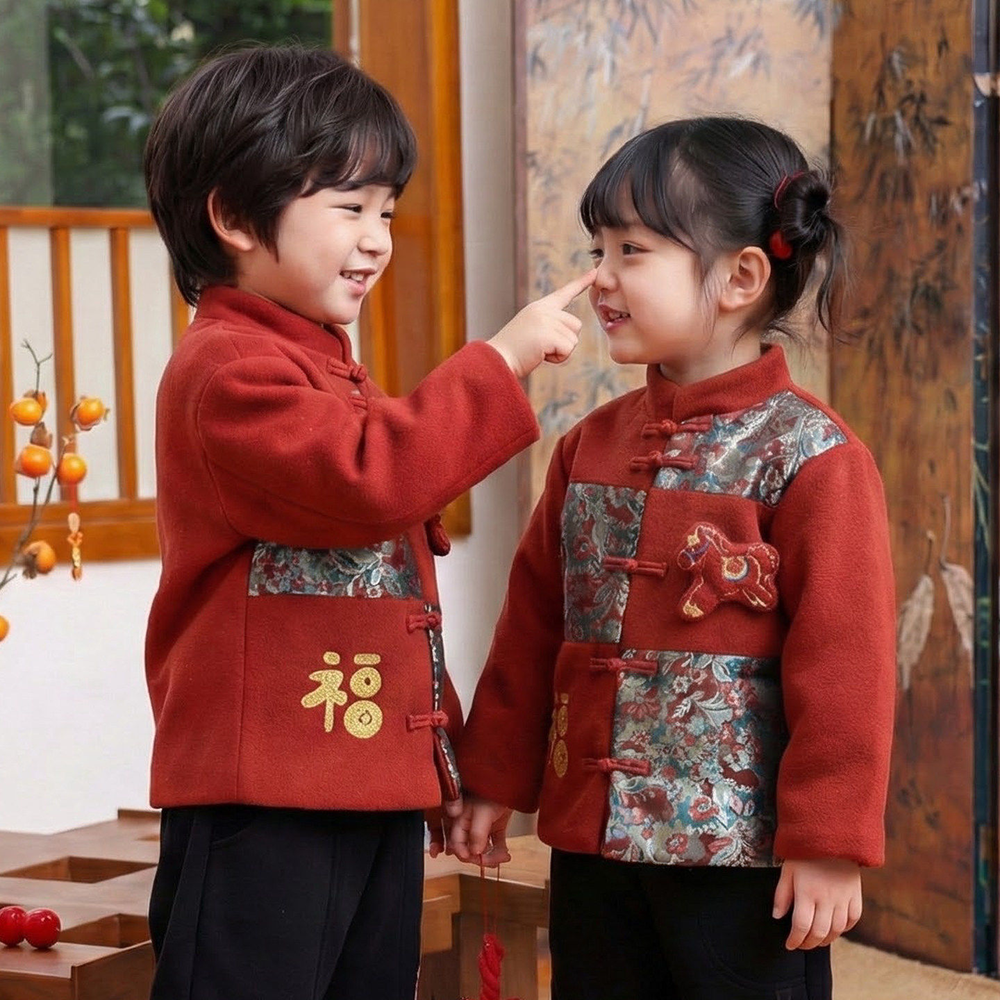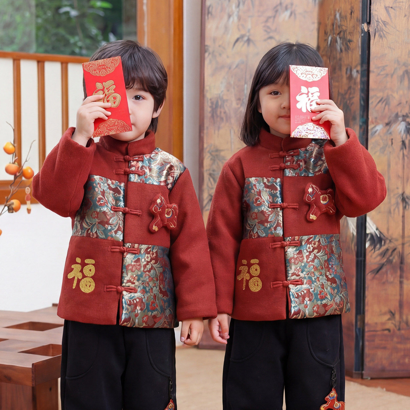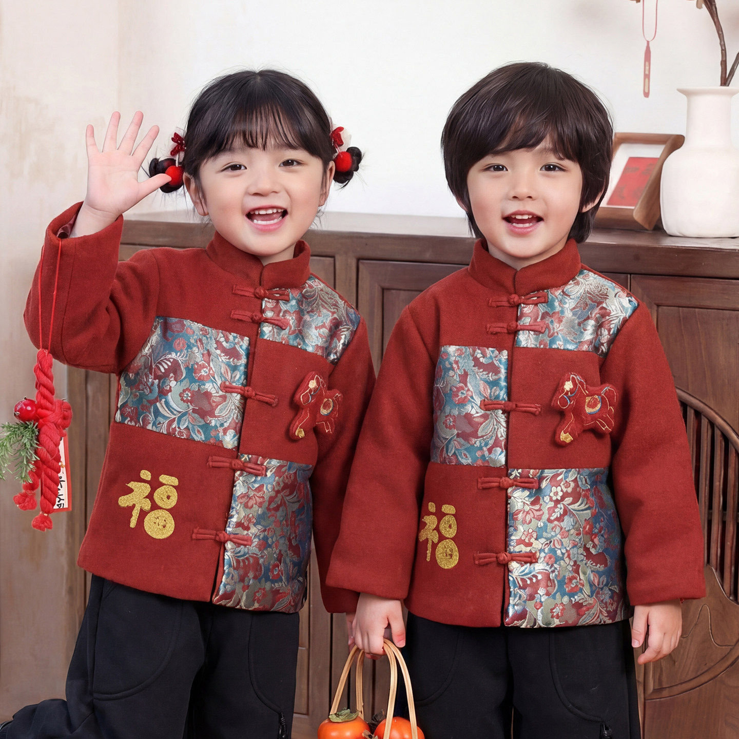 拜冬年服喜庆风儿童过年服男童冬装衣服2026马年新款女童红色外套
