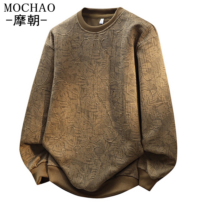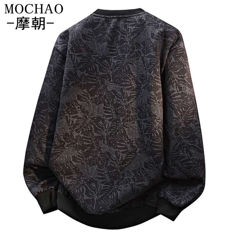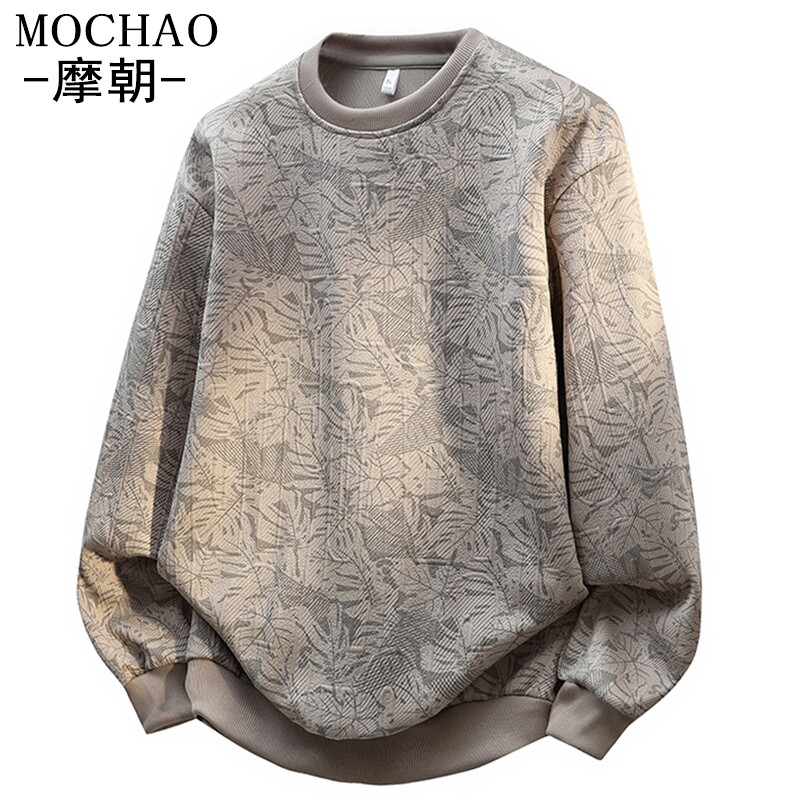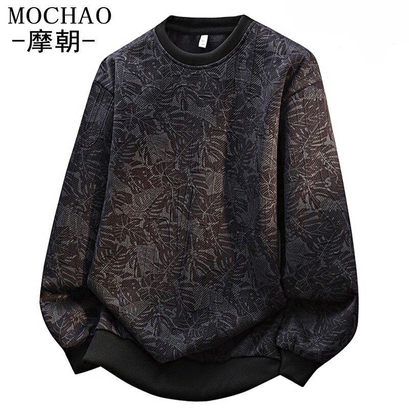 摩朝大码满印提花卫衣男春秋款宽松百搭显瘦潮牌胖子打底长袖上衣