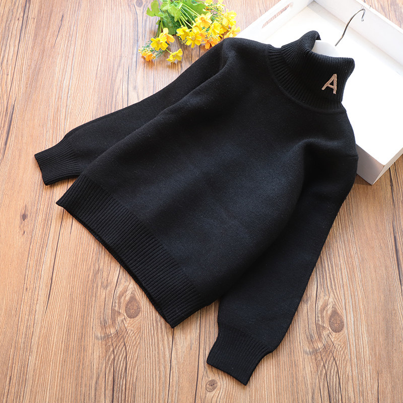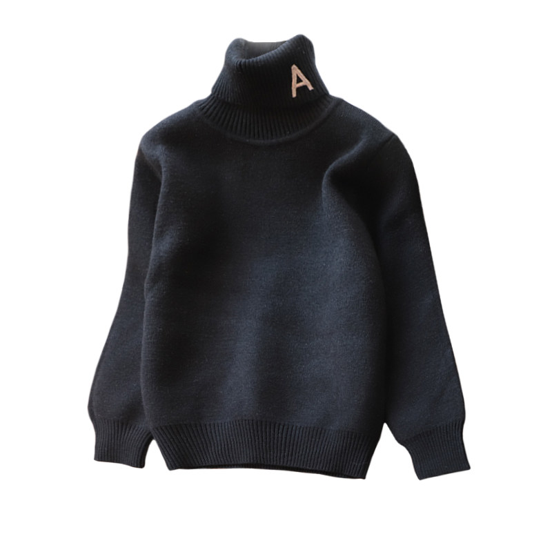 儿童高领毛衣纯色冬装加厚一体绒线衣百搭中大男童洋气打底针织衫