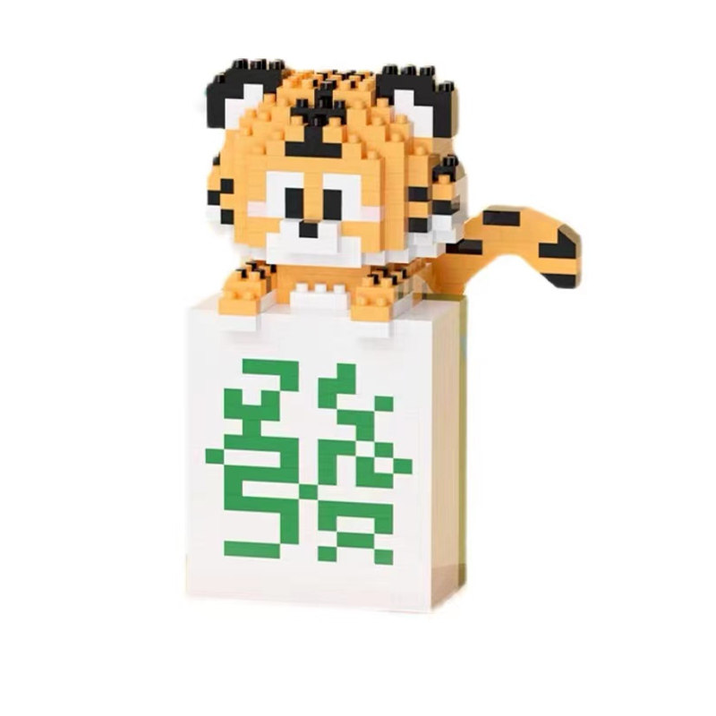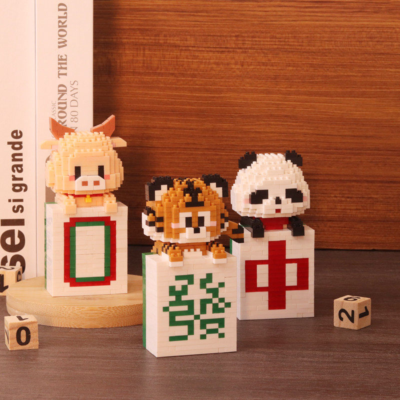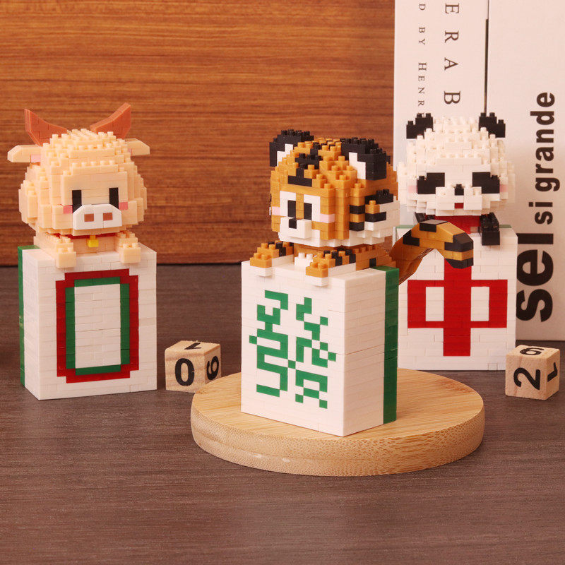 麻将熊猫老虎年积木拼装拼图玩具龙年学生男孩女孩六一儿童节礼物