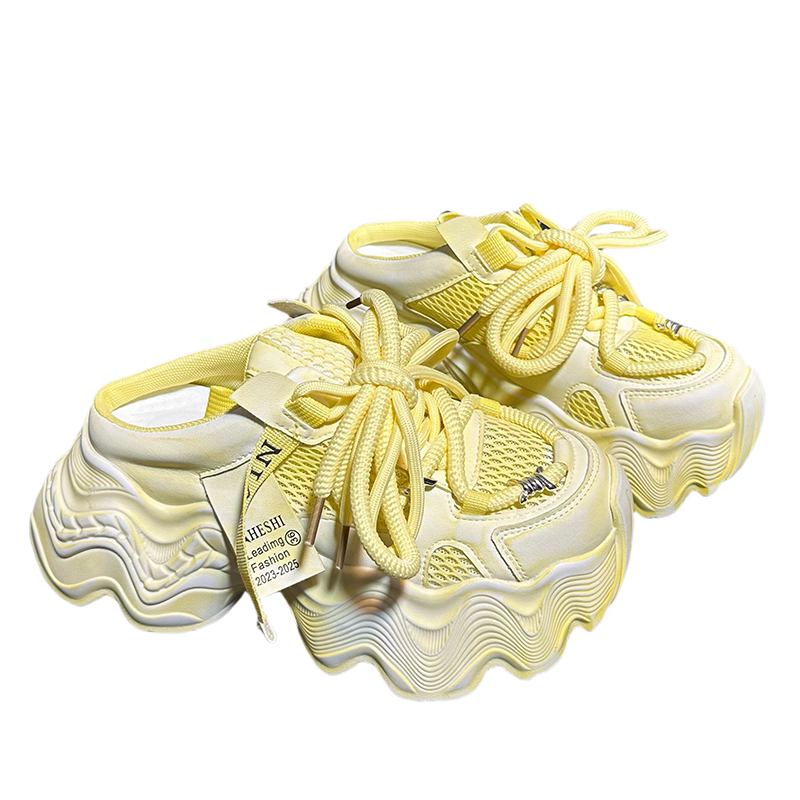 欧货真皮做旧松糕厚底老爹鞋2026新款包头半拖鞋女增高休闲运动鞋