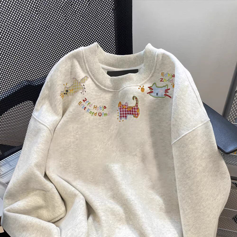 纯棉女童可爱卫衣女秋冬新款加绒加厚春秋内搭洋气打底衫宽松上衣