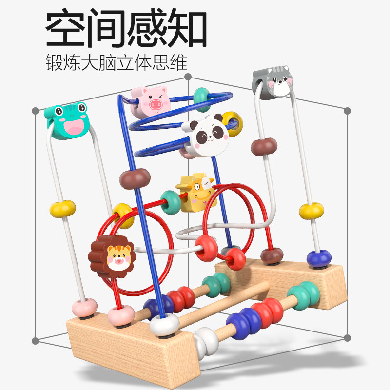 实木婴儿童绕珠积木6串珠7八9以上8个月宝宝玩具0一1岁益智2早教3