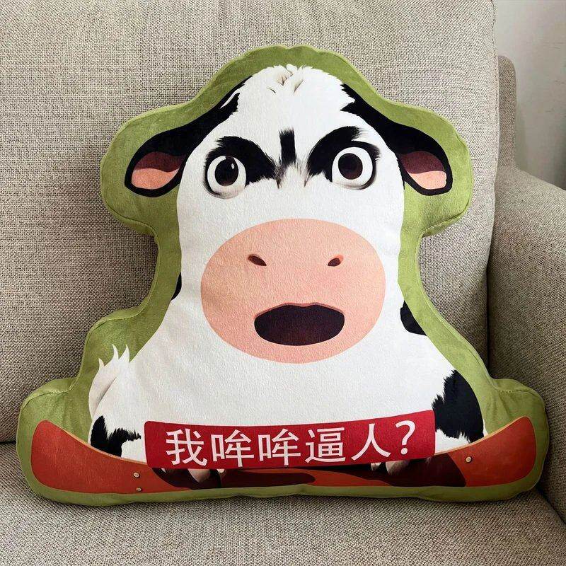 抽象草地牛抱枕玩偶丑萌表情包毛绒挂件搞怪解闷小玩意牛公仔礼物