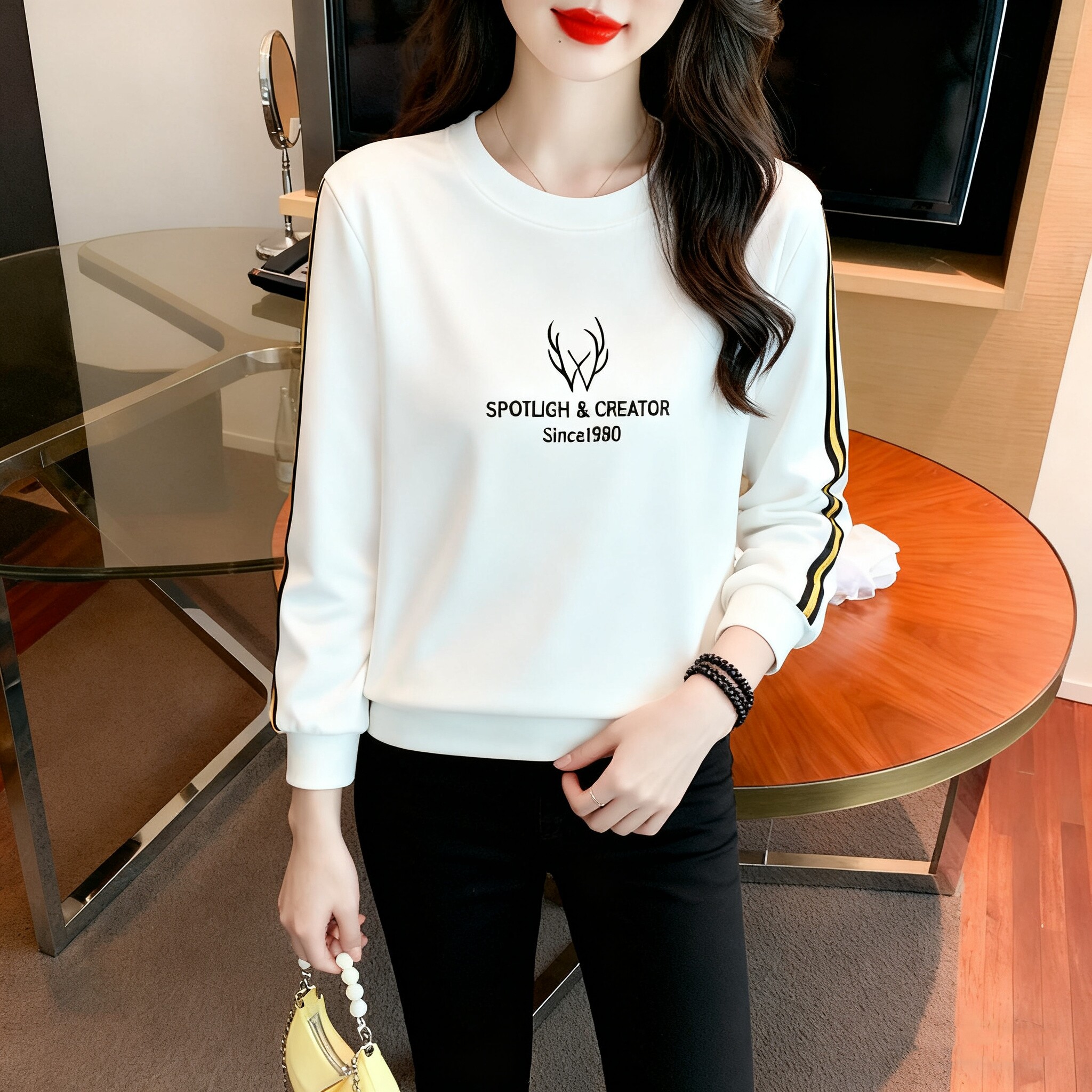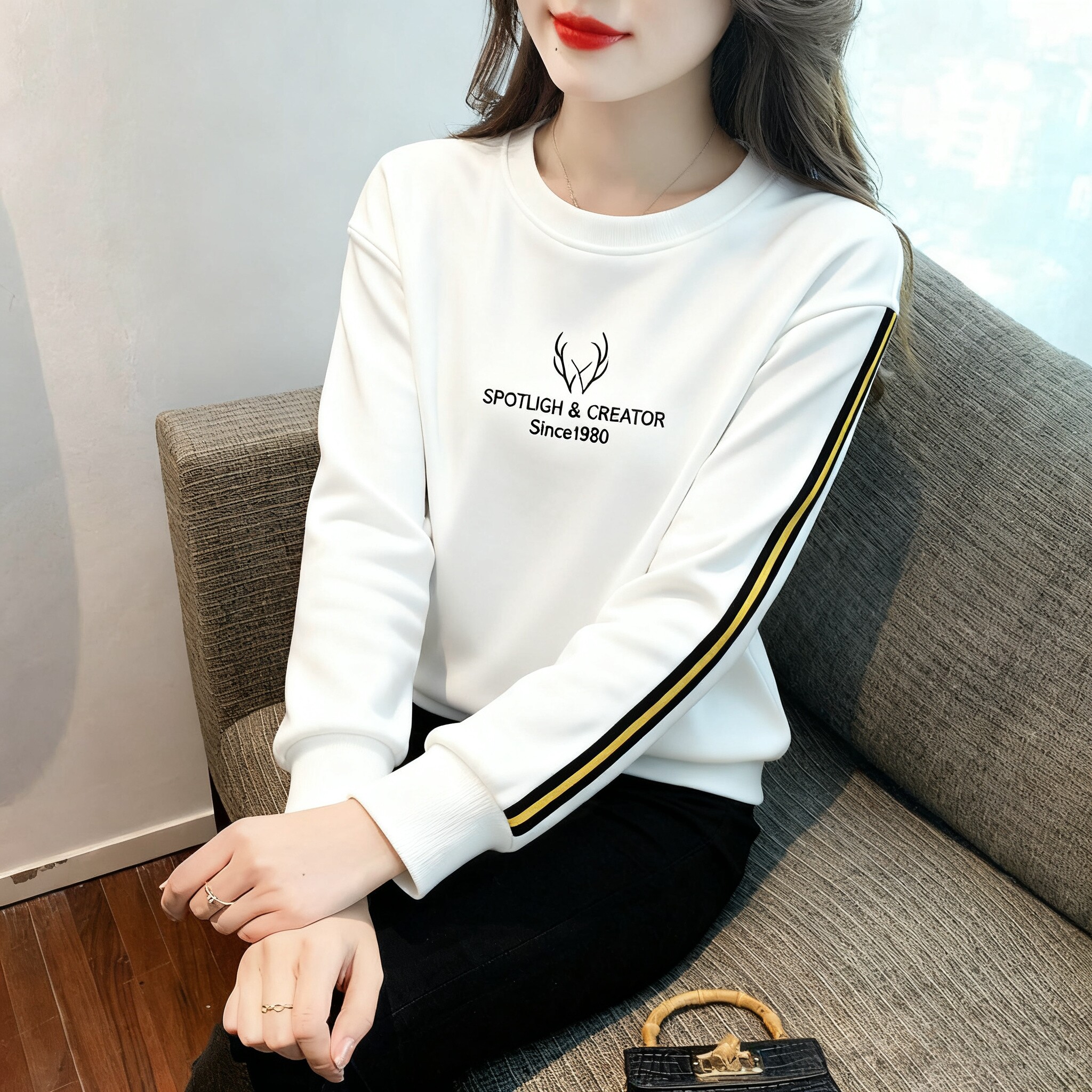 2026早春新款洋气白色长袖T恤女装打底小衫百搭宽松薄款小众上衣