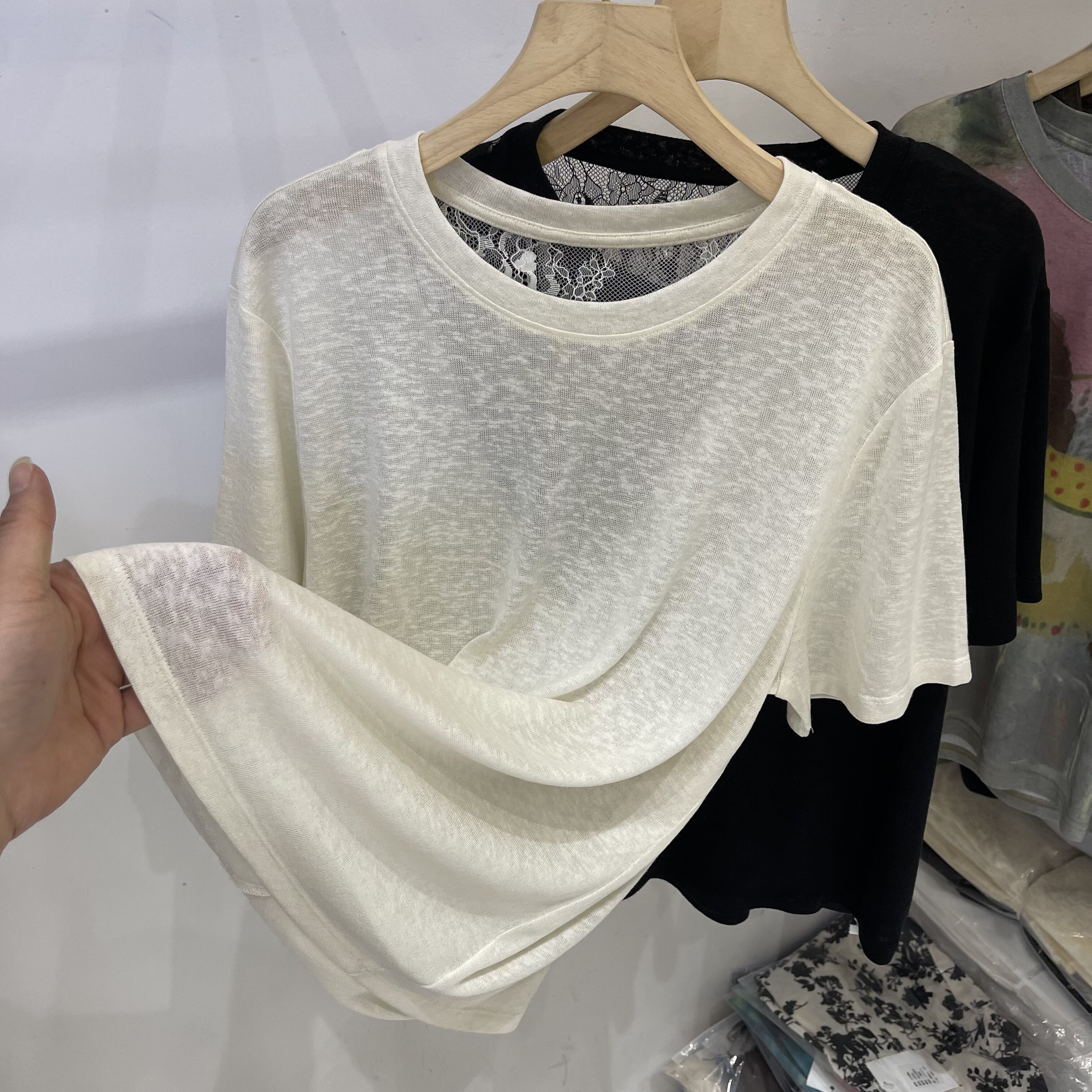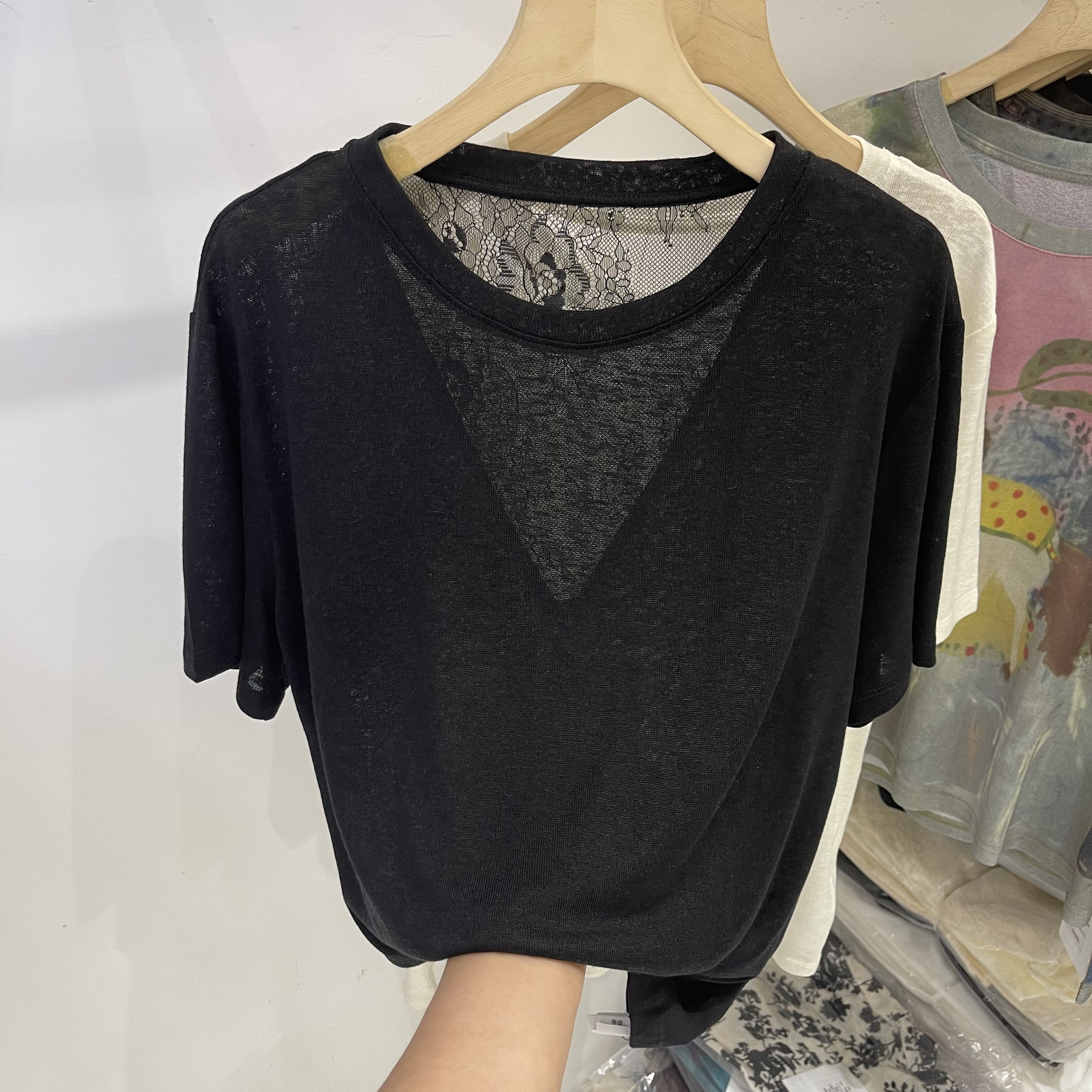 轻薄款蕾丝拼接短袖T恤女2026早春新款休闲洋气甜美打底衫上衣潮
