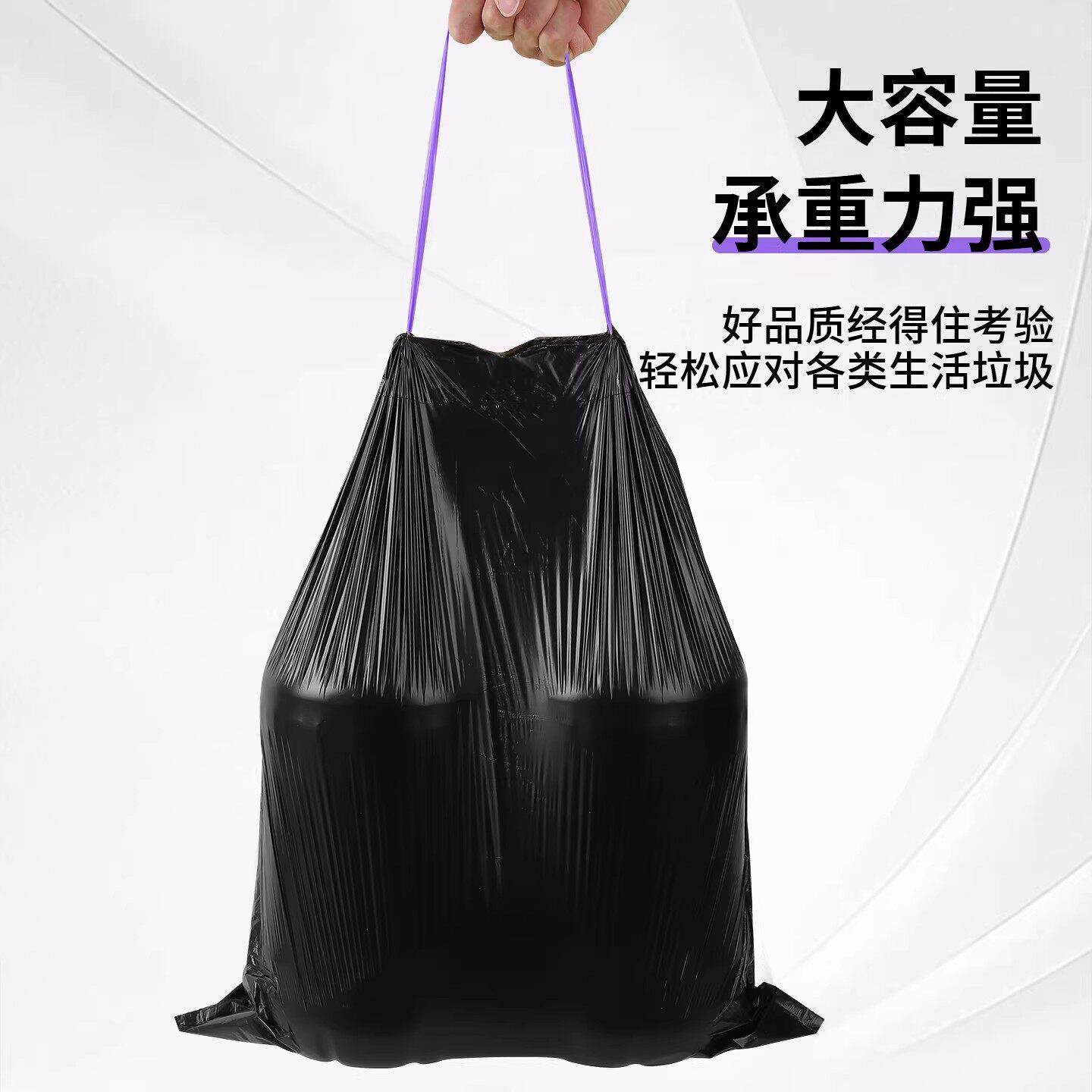加厚垃圾袋家用手提式抽绳免撕厨房宿舍大号黑色塑料袋办公室袋子