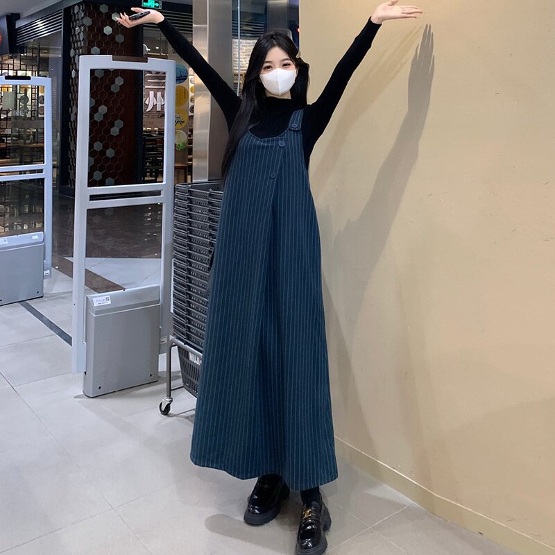 孕妇装2025秋季新款韩版时尚条纹背带裙黑毛衣2件套孕妇连衣裙
