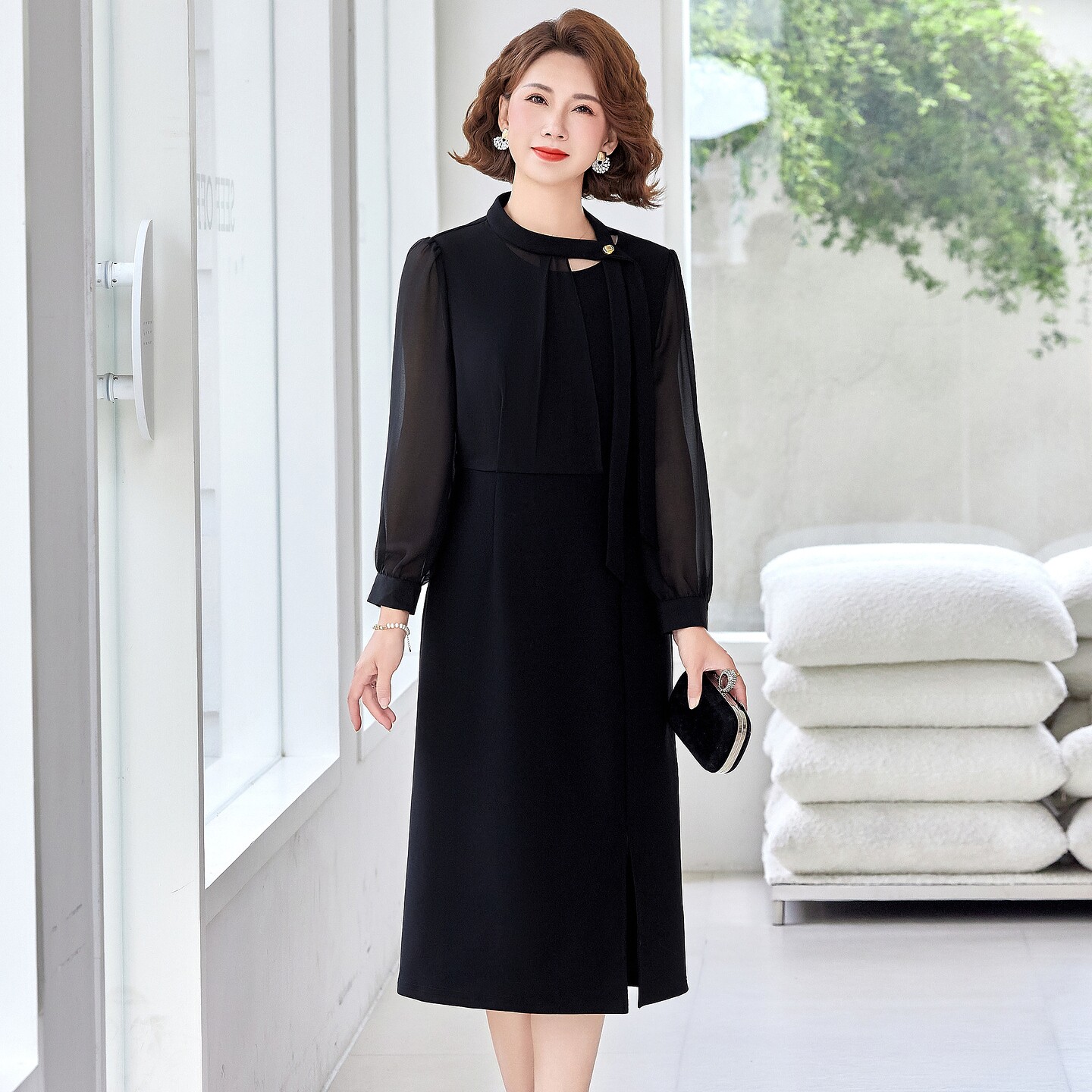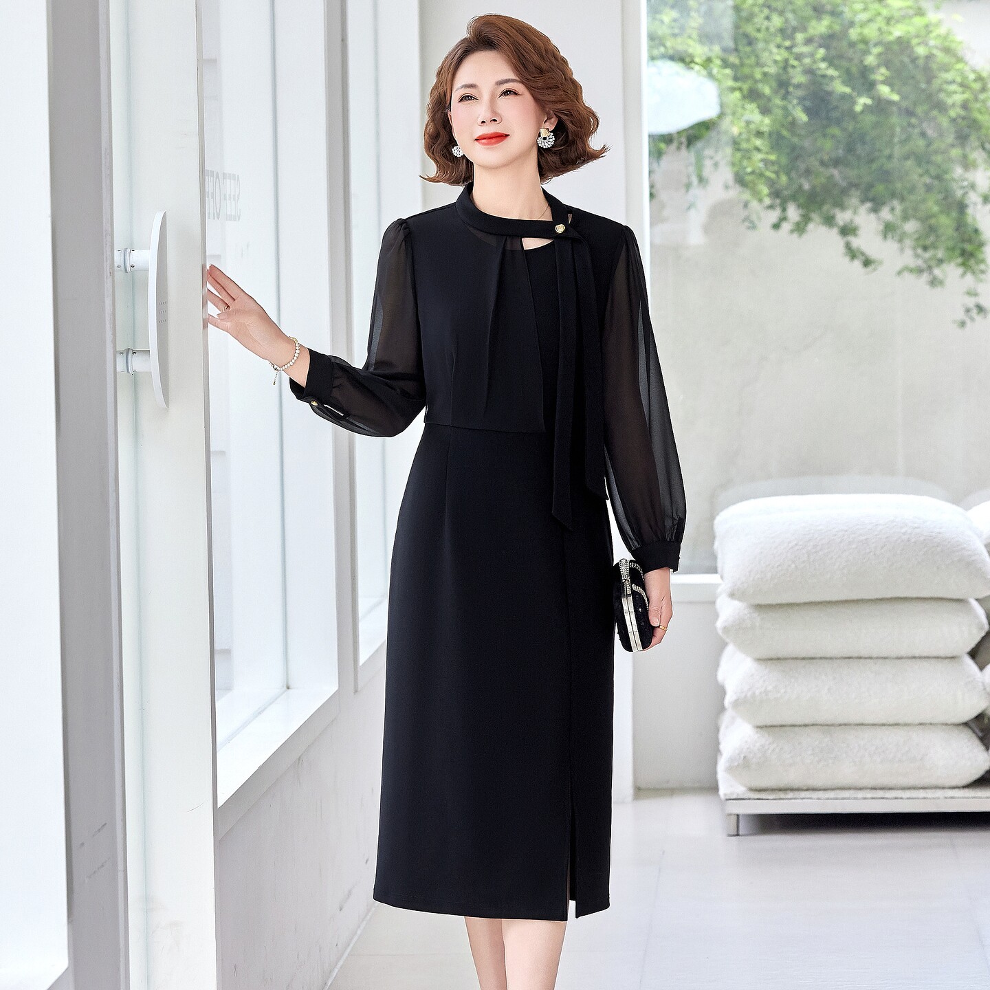 婚宴妈妈礼服长袖连衣裙高级感2026新款春夏中年女装端庄大气长裙
