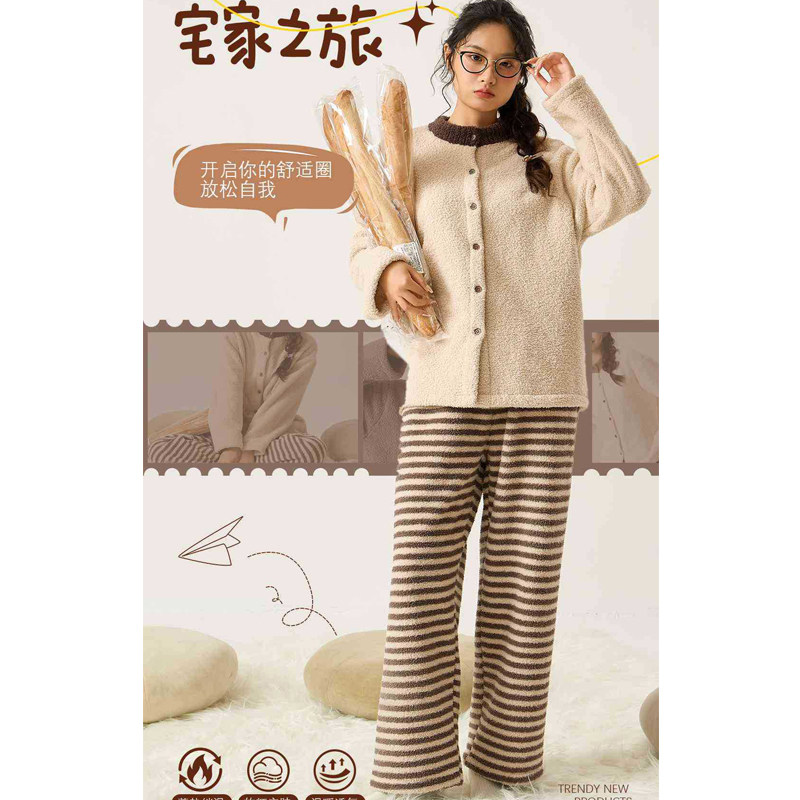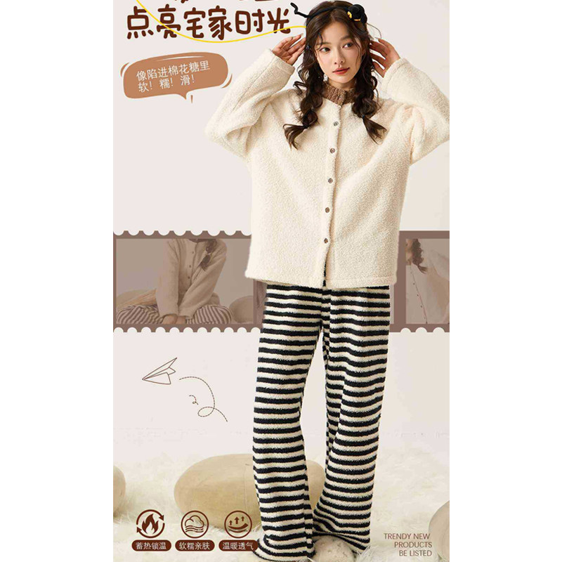 时尚洋气软糯半边绒睡衣女款2025新款冬加厚保暖可外穿家居服套装