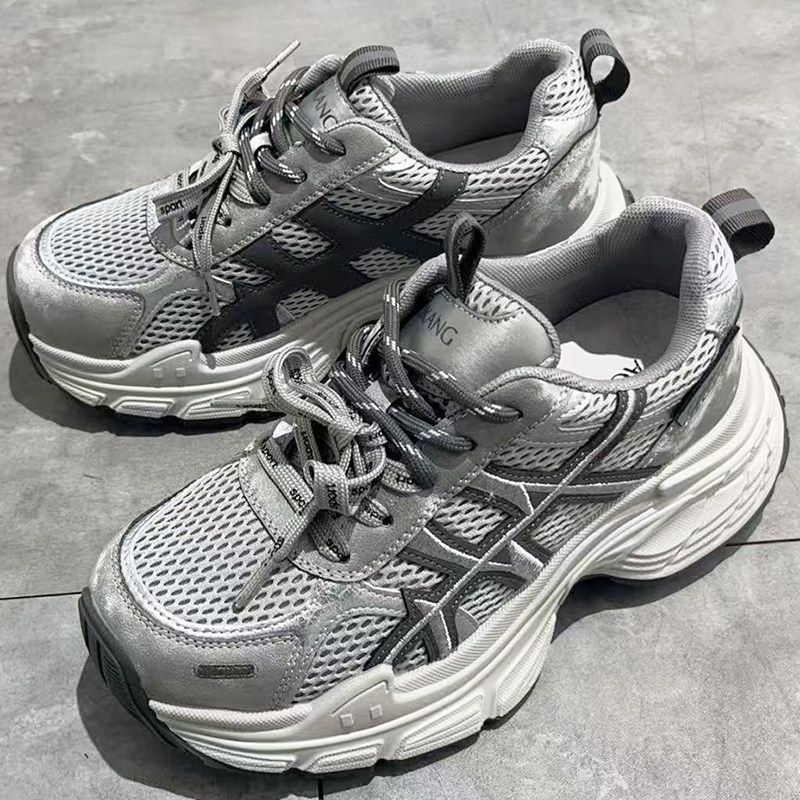 奥康女鞋2026春款休闲系带厚底网面老爹鞋女单鞋9262122017灰色