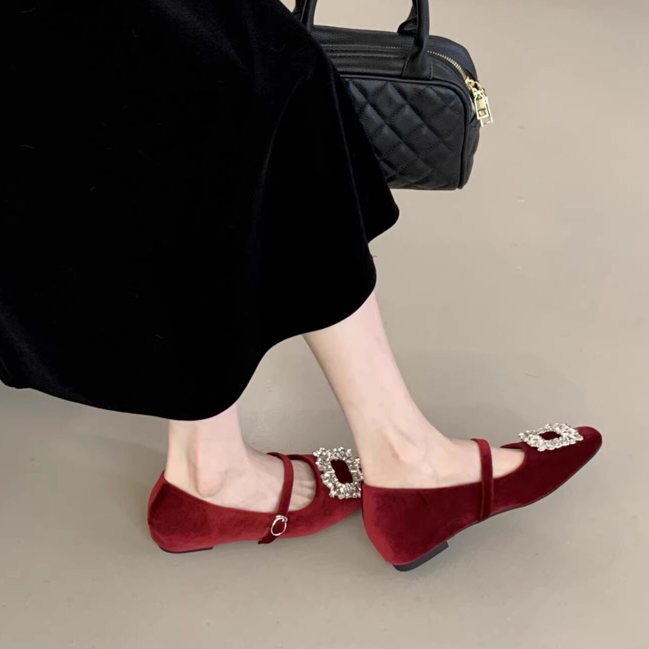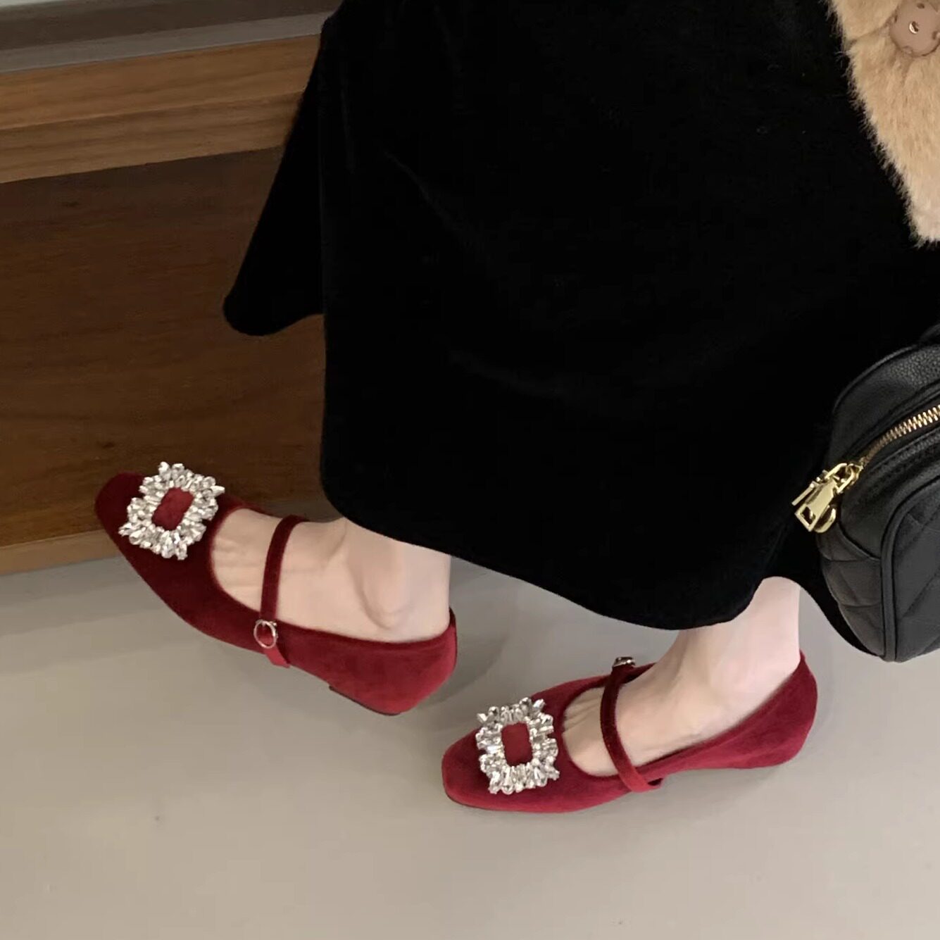 法式水钻内增高玛丽珍鞋女2026新款春季一字扣带粗跟浅口气质单鞋