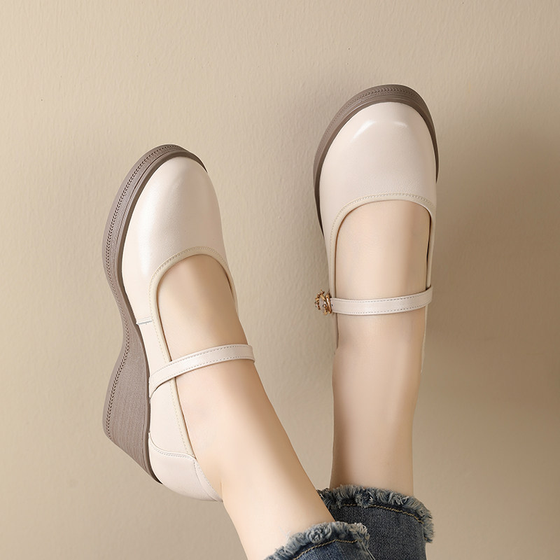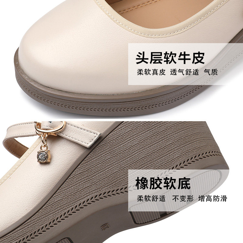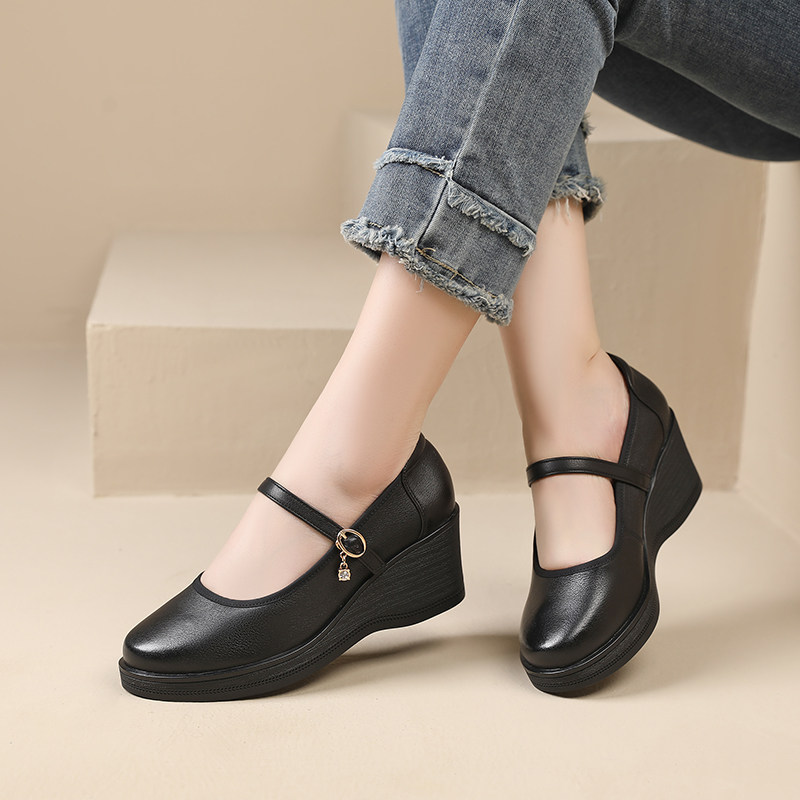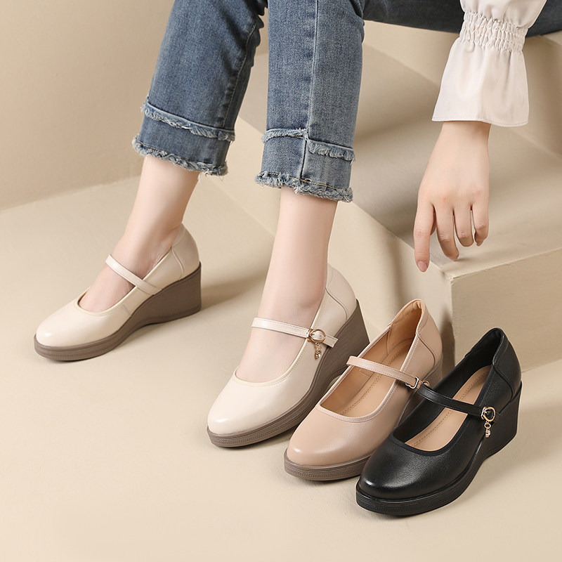 坡跟厚底新款百搭女单鞋2025春夏高跟妈妈鞋大码43浅口一字扣女鞋