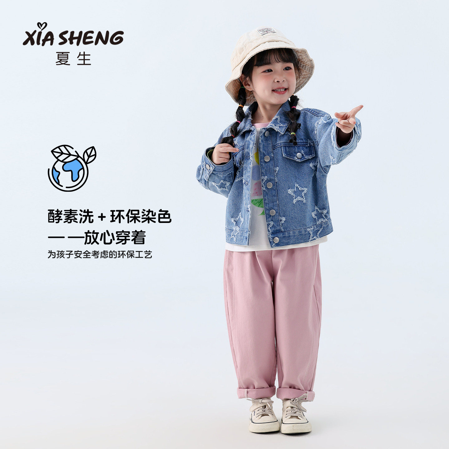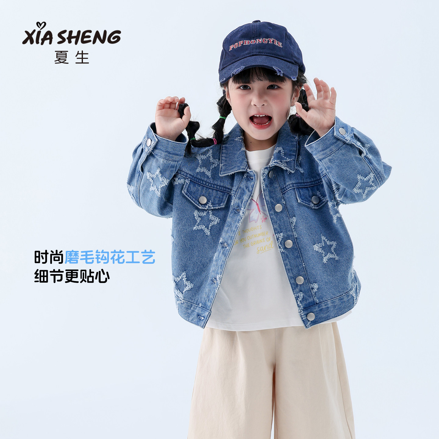 夏生星星外套男女童纯棉休闲百搭牛仔服磨毛钩花上衣儿童春装新品