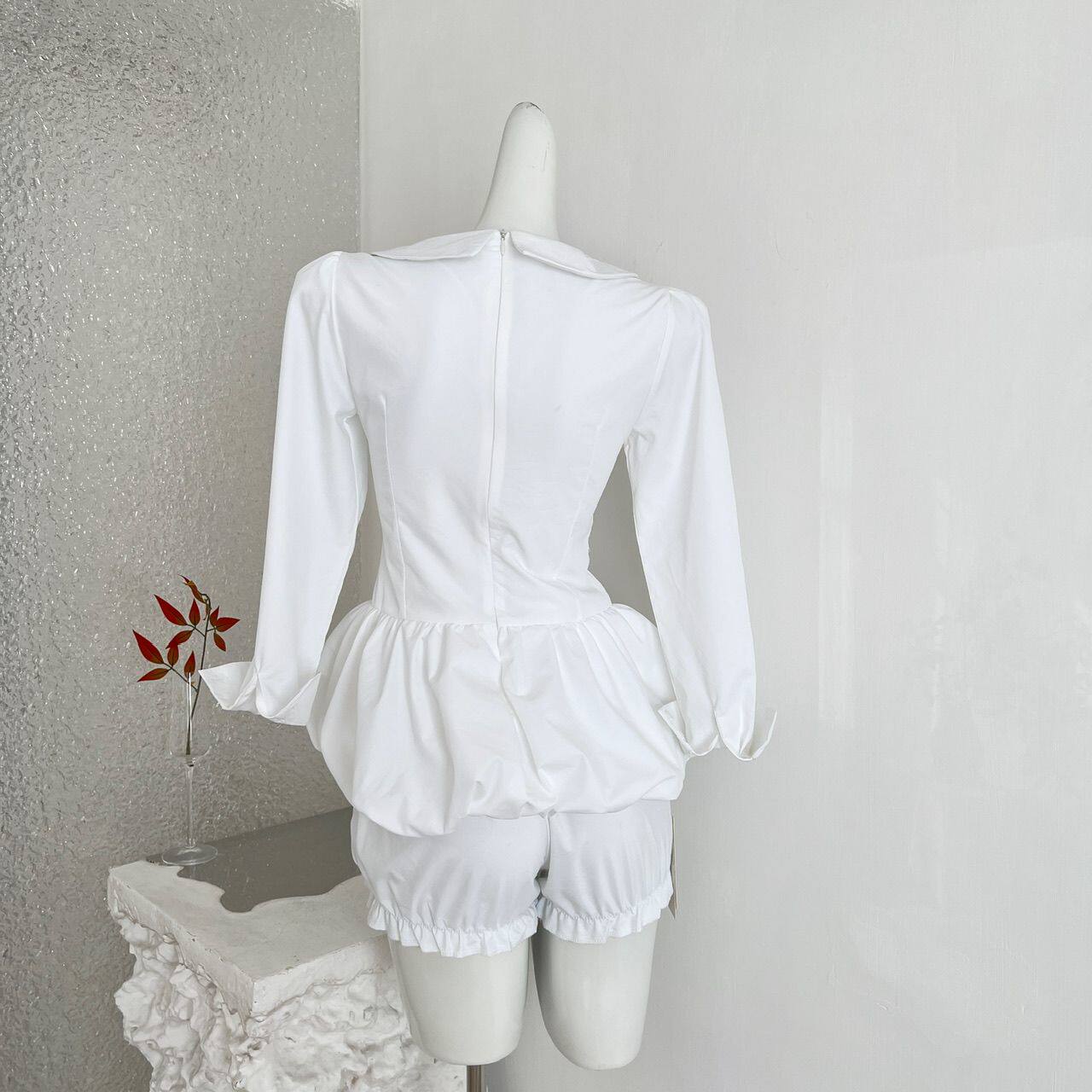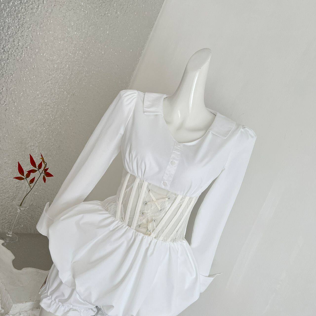 ifashion早春夏白色高级感收腰显瘦长袖短款衬衫裙漂亮掐腰连衣裙