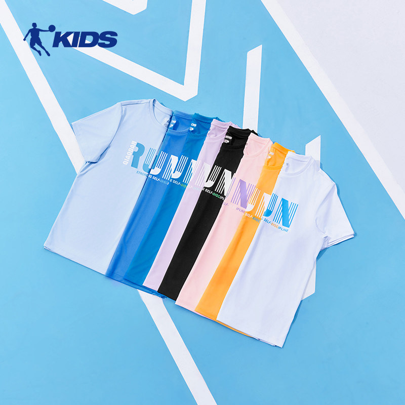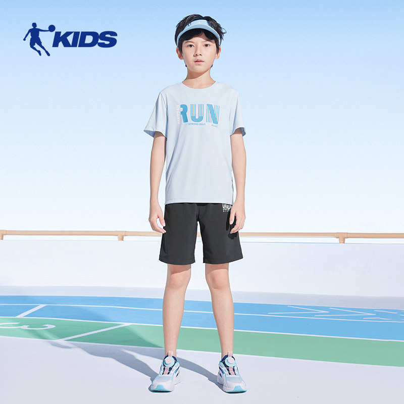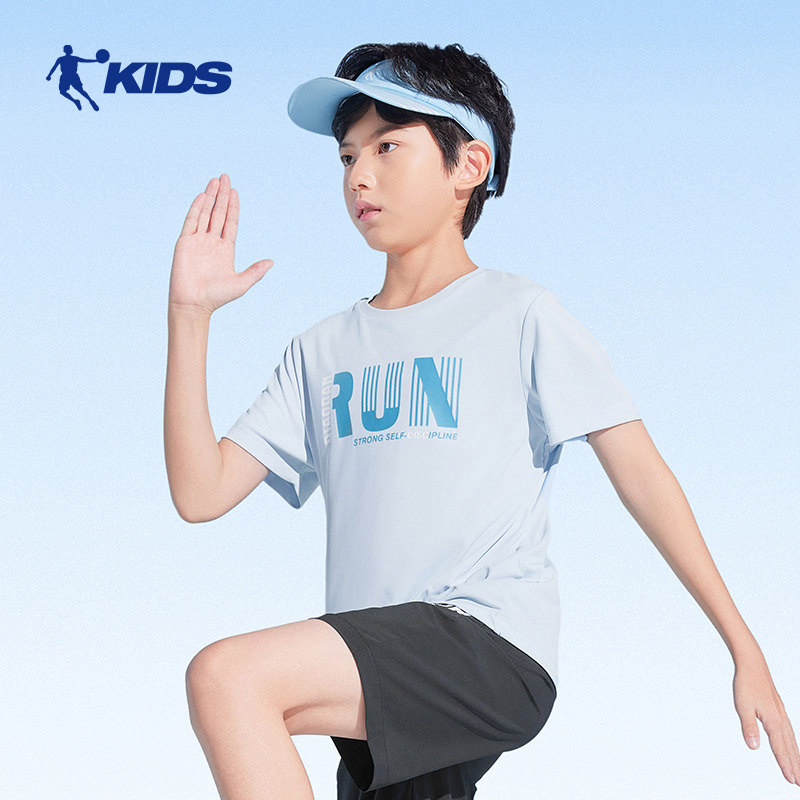乔丹童装夏季新款男童短袖T恤圆领儿童速干短t运动半袖上衣潮薄款