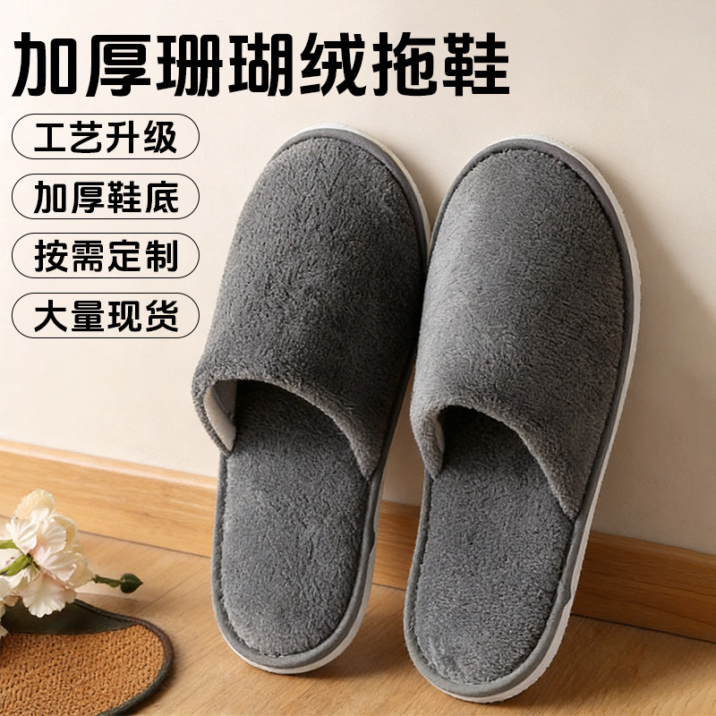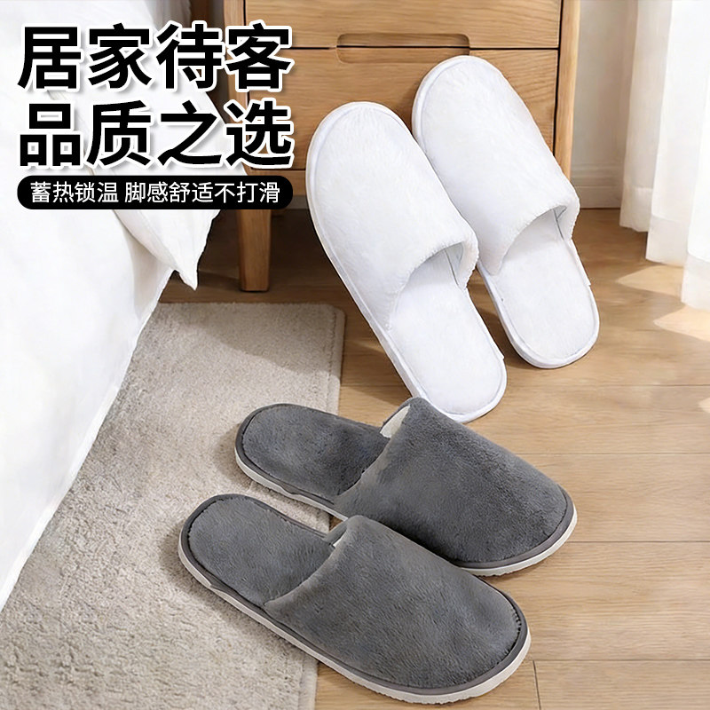 10双一次性拖鞋待客家用加厚室内居家防滑大码秋冬季酒店旅行便携
